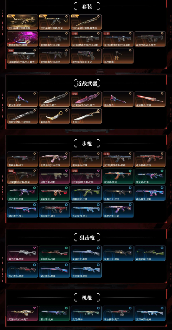 【可排】25冠军套/混沌序曲2.0套/VCT26篆刀/三棱刺/莲花狂徒/侦查幻影/离子大狙