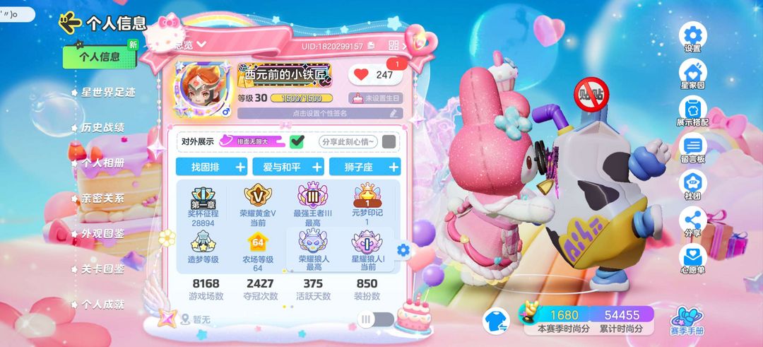 历史时尚分5W+ 64级农场开服号 三丽鸥全套 暴暴龙 蜡笔小新 历史荣耀狼人 可语音可排位
