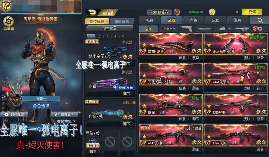 v12全服唯一•终极弧电离子!寰宇幻灵!满配件积木奇兵!军刺•鎏金!满配饰黄金战团!广陵贰!天平晶刹