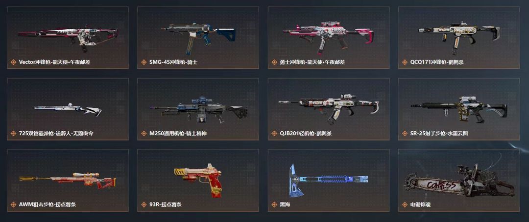 皮肤号 极品号✨3红皮7体力✨M7棱镜攻势✨飞虎吴彦祖✨黑海/电锯刀皮✨蚀金玫瑰✨午夜邮差✨天际线