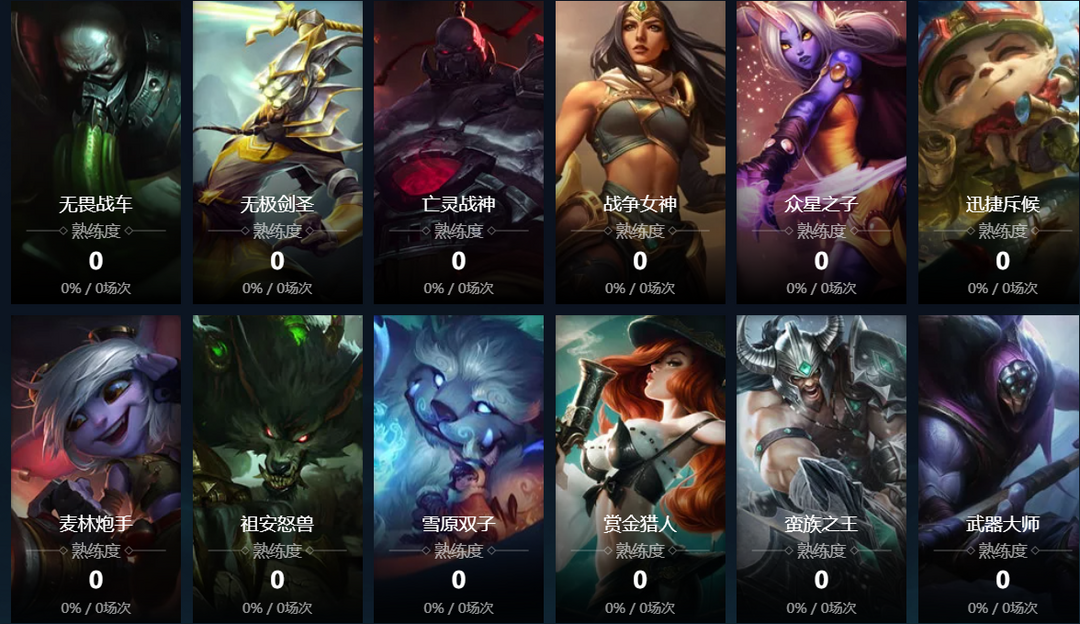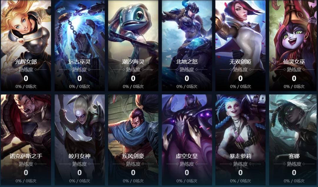 暴走萝莉;麦林炮手;皮城女警;探险家;戏命师;赏金猎人;无畏战车;寒冰射手;黑暗之女;正义巨像;德邦