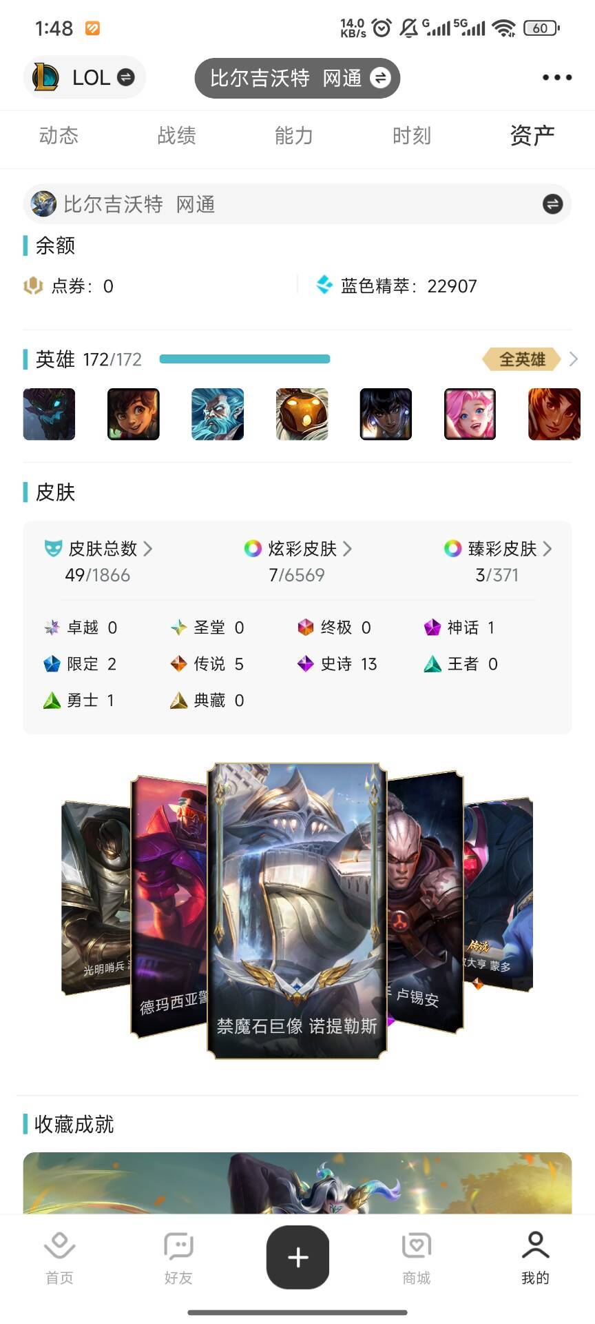 比尔id你怎么不出肉#37471英雄172皮肤99 艾尼维亚;情绪摇滚 阿木木;亮丽女神 希维尔;武