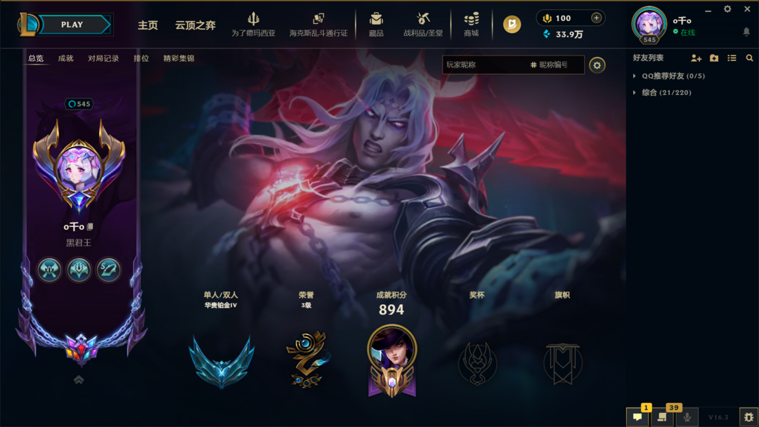 段位:545级 华贵铂金IV