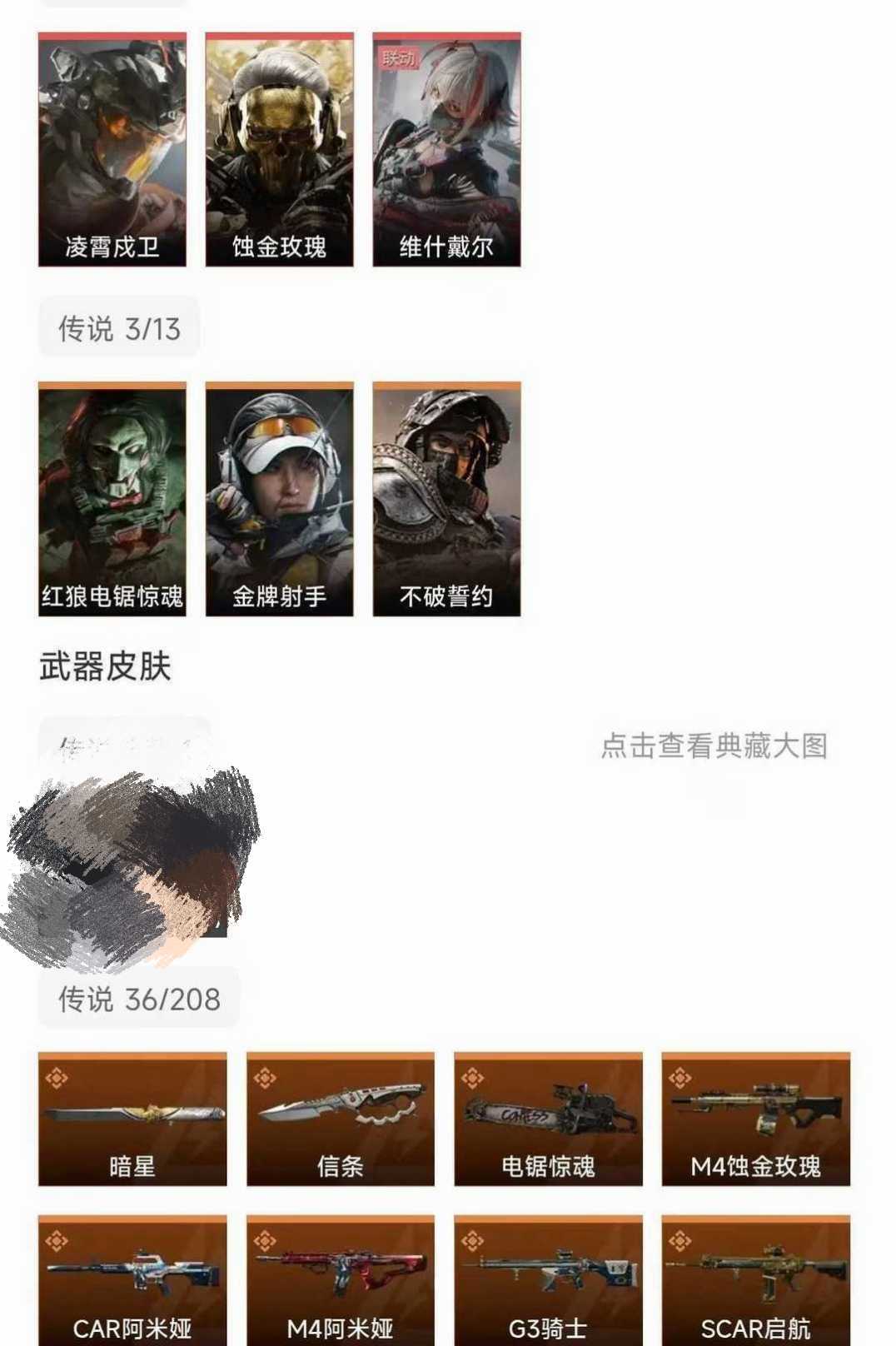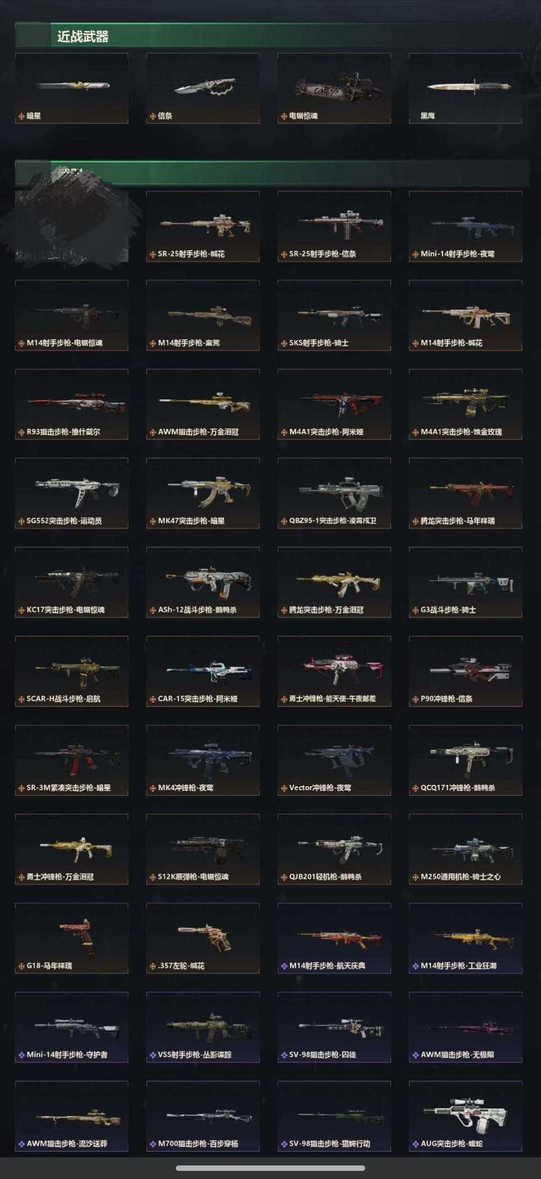 皮肤号 暗星,信条,凌霄戍卫,蚀金玫瑰,维什戴尔,36款传说枪皮