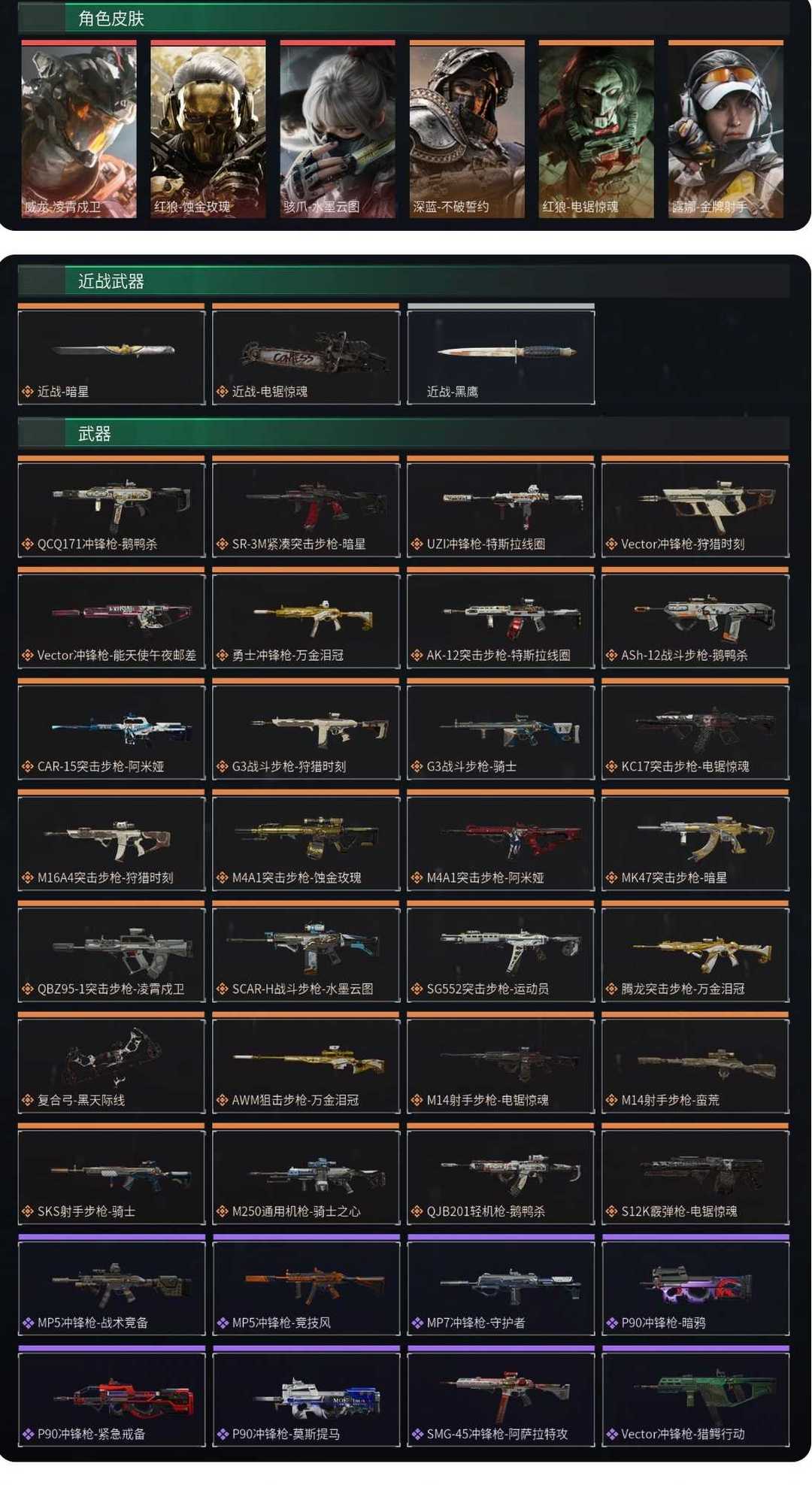 皮肤号 暗星凌霄戍卫,蚀金玫瑰,水墨云图,电锯惊魂