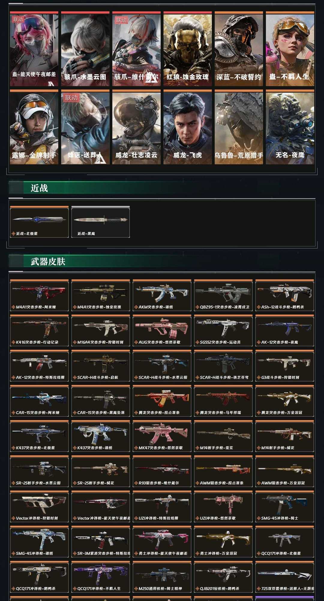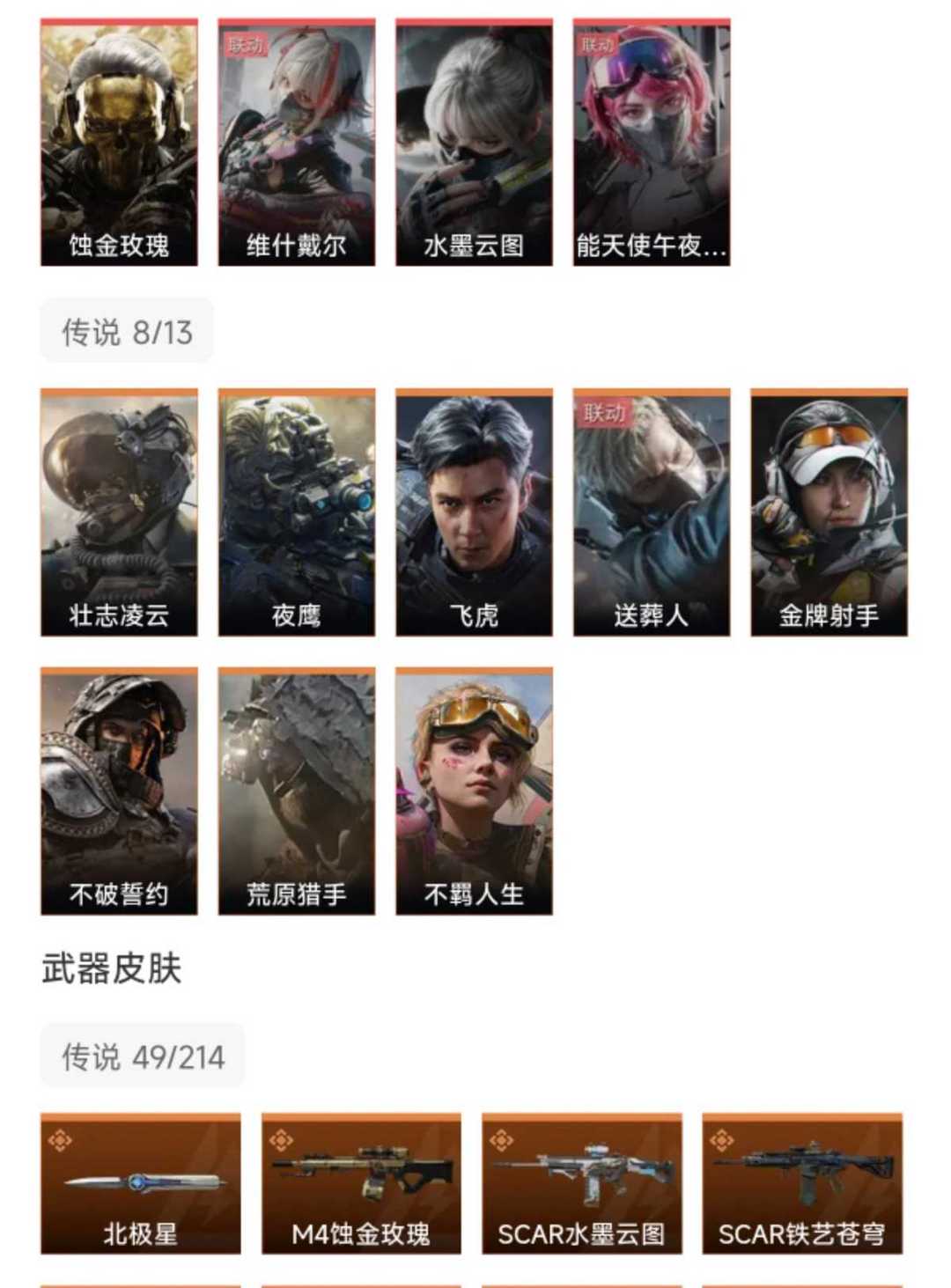 皮肤号 高比例北极星4红蚀金玫瑰吴彦祖,维什戴尔,女医,水墨云图,49款传说枪皮
