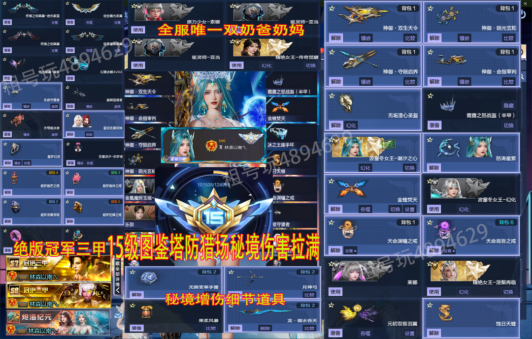 「平台最强」潮夕波塞冬神谕套渊瞳莱娜五转武92关969奶妈璃璎双姝星桓四臂铠✨冰精灵焰甲金蛇女王霜霆