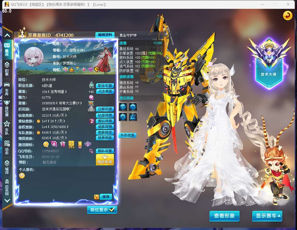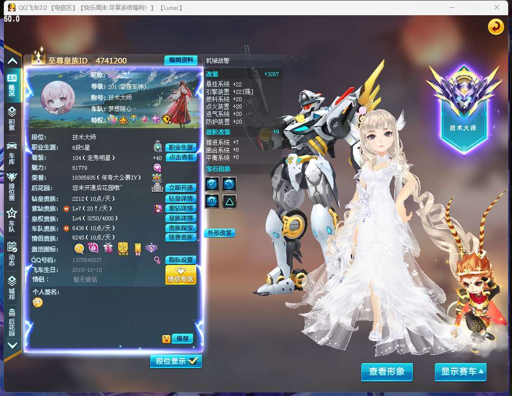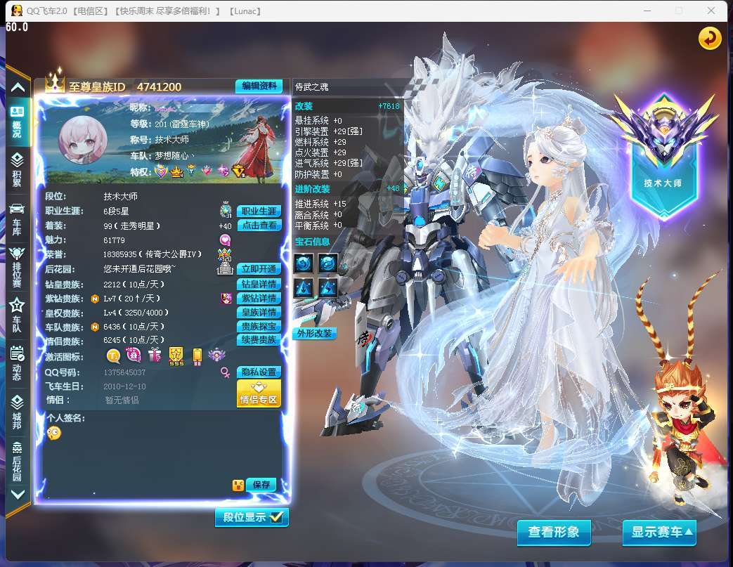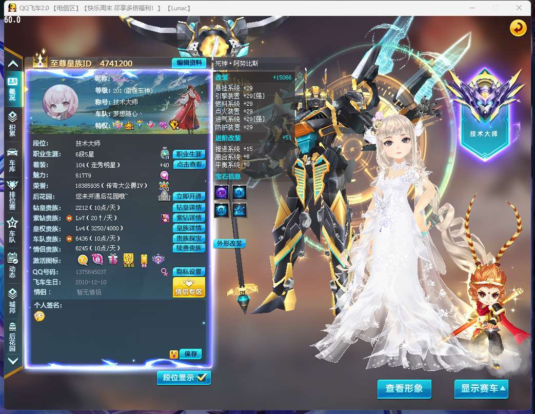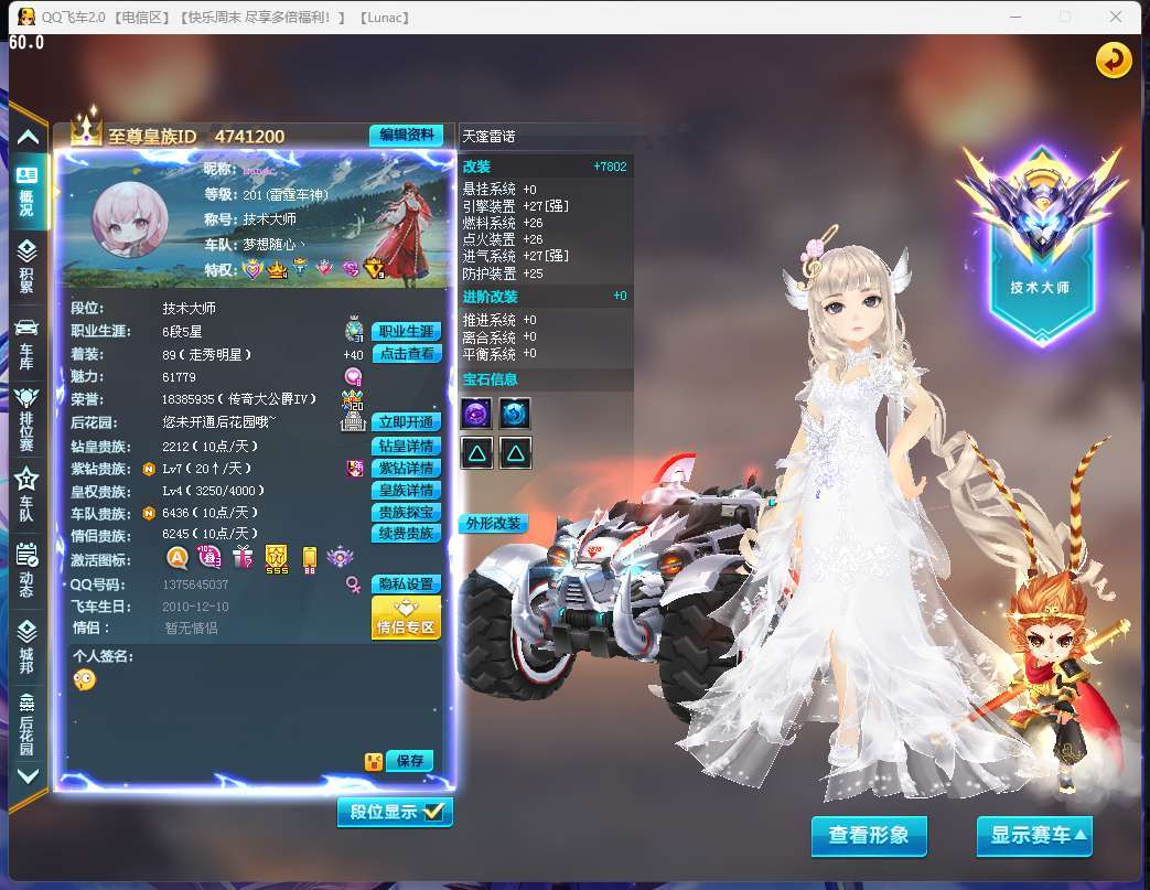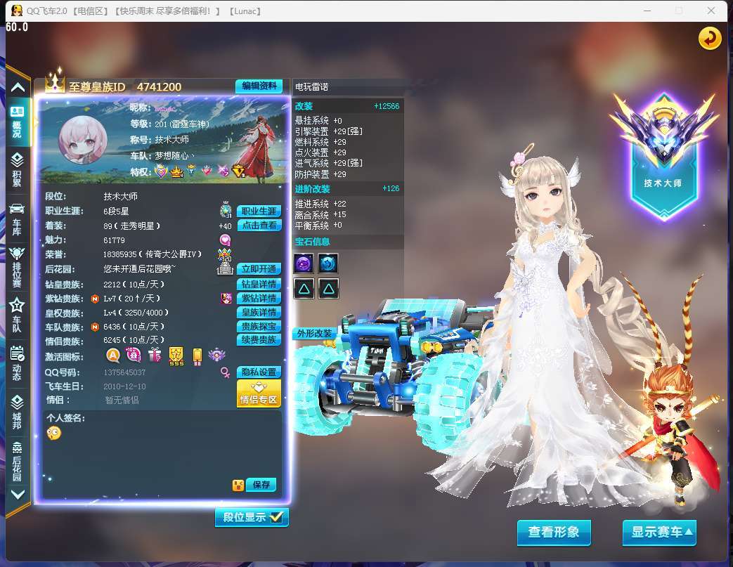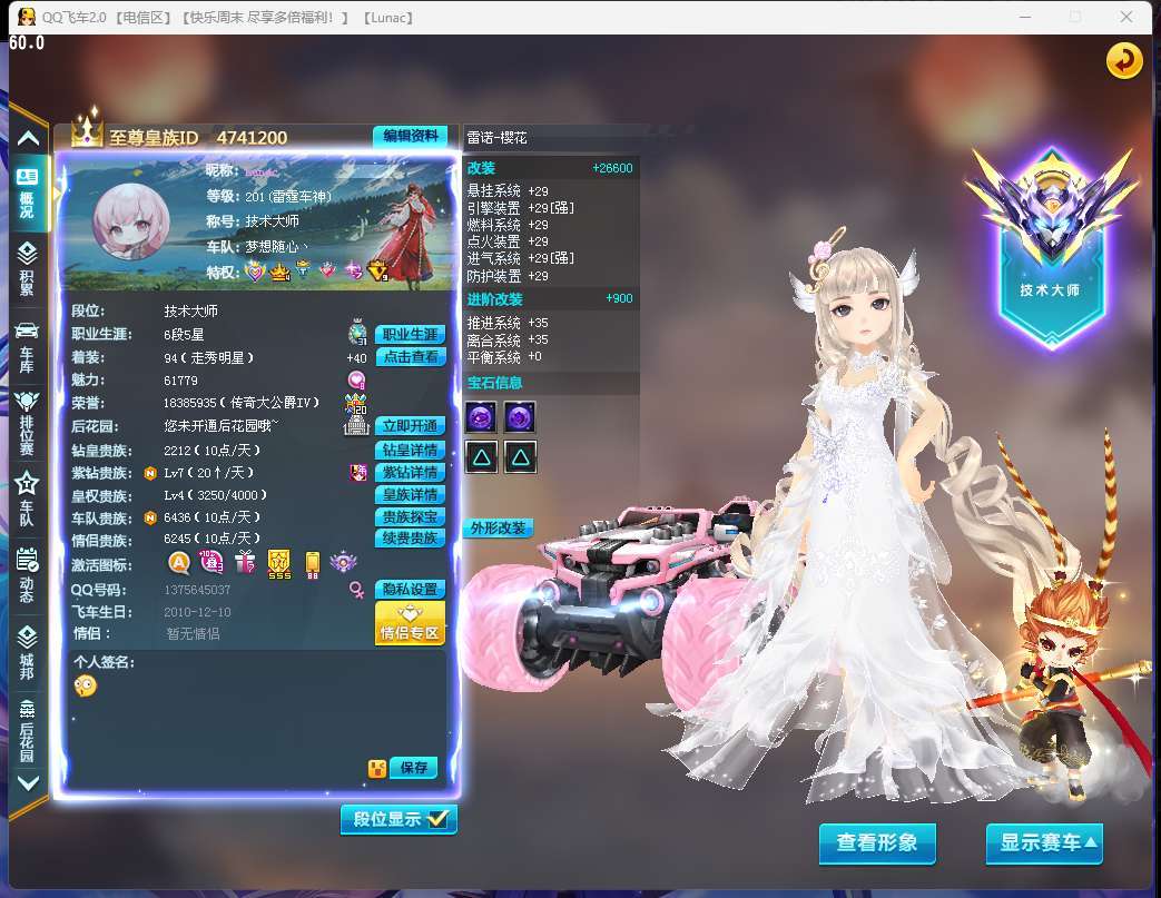 装备描述:2s3T2,7T1,20A车❤️众神之神麒麟❤️雷神之怒❤️死神阿努比斯❤️钻7飞碟满改❤️6万魅力。 满改雷诺樱花