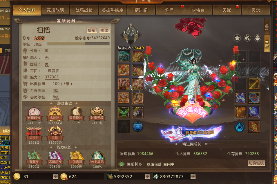 尊4 136W神兵 幻神30W魅力大量玩具 599皮肤