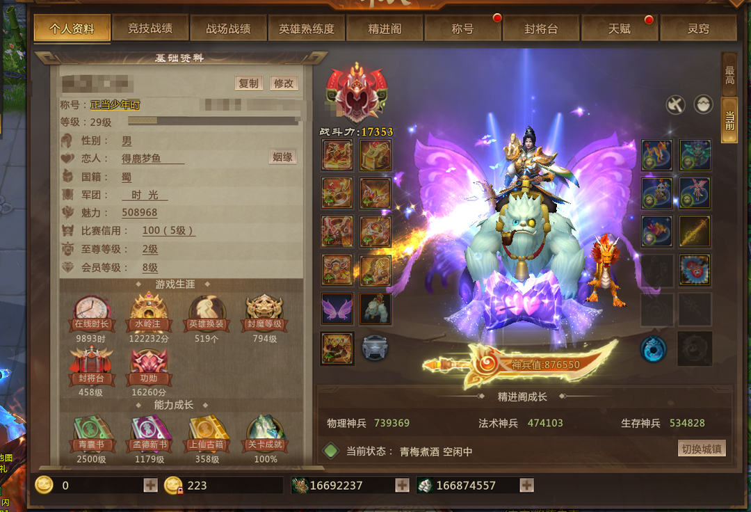 (逃跑拉黑),月卡至尊6vip8 幻神 30万魅力 521换装大圣翅膀各种玩具上亿士兵随便吃鸡