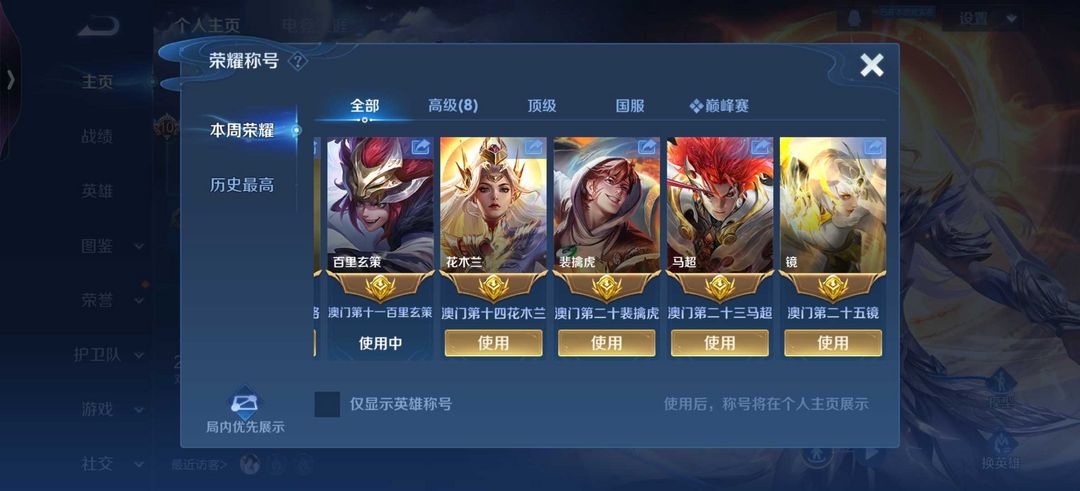 一月在榜省标马超玄策镜花木兰❤️历国服花木兰国服露娜国服马超国服镜小乔小国标马超金标澜韩信娜可