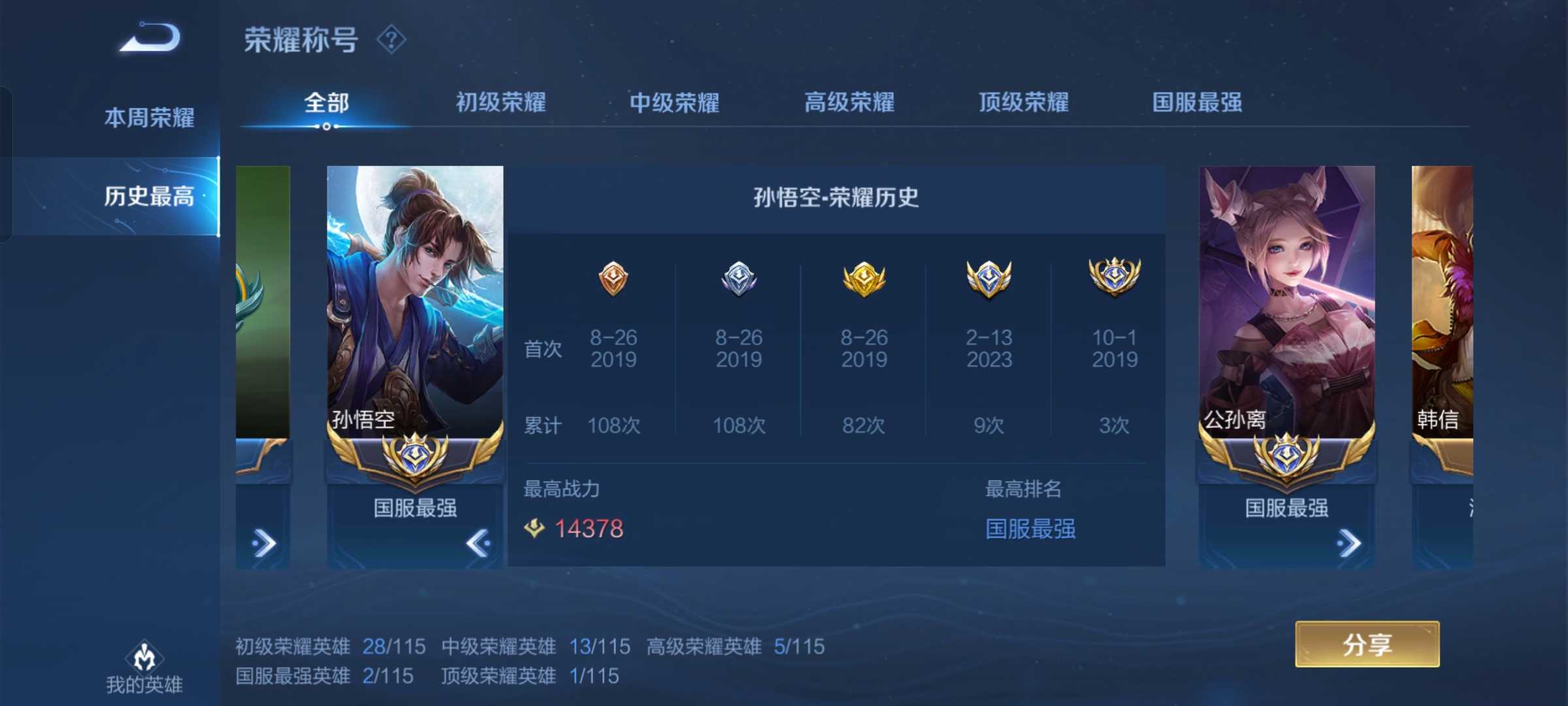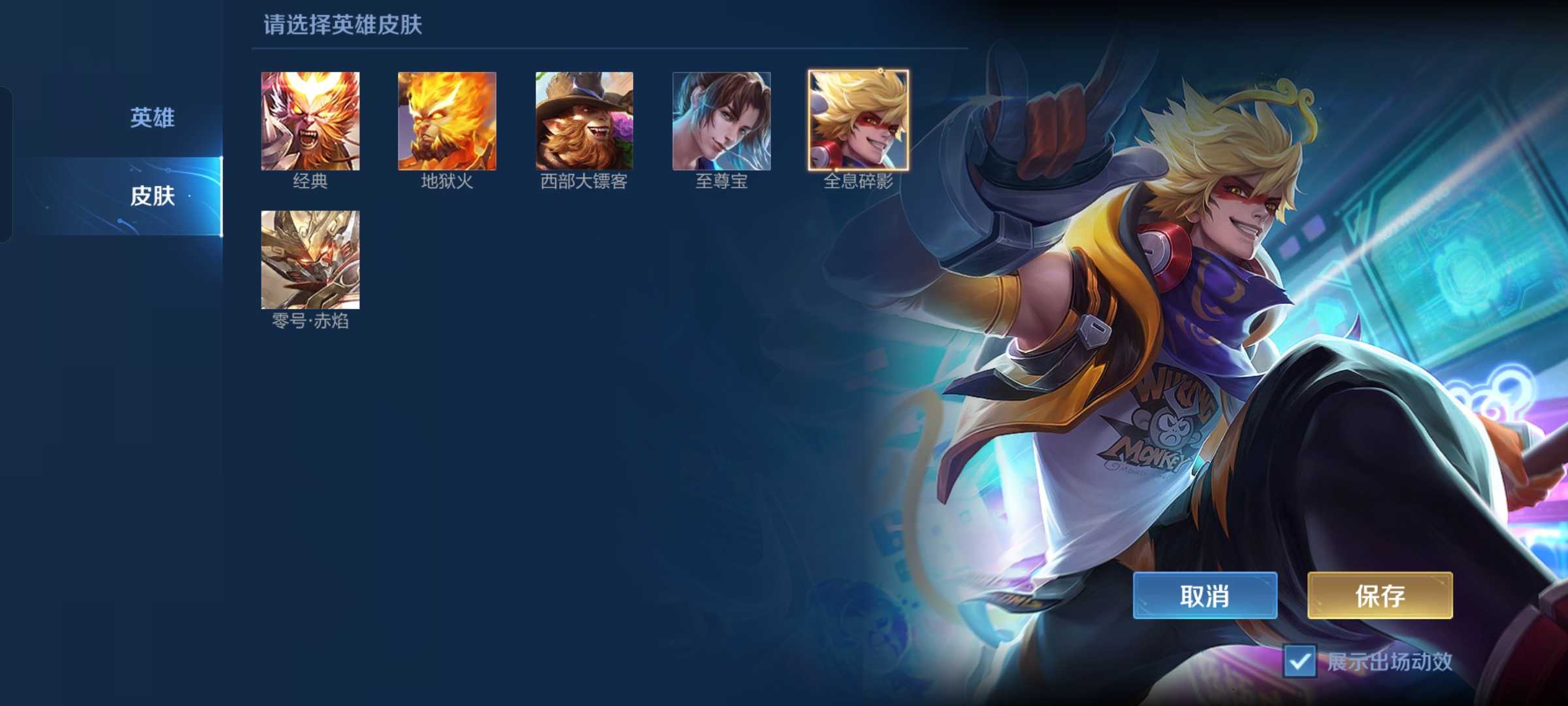 ☀历史国服猴子☀☀全息碎影☀猴子皮肤全☀可排位