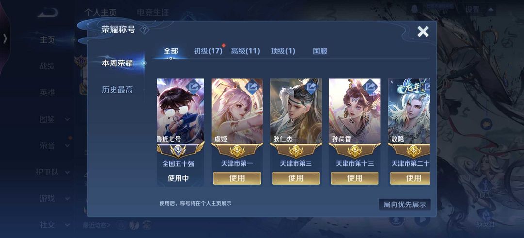 在榜国服【鲁班】.发育路113段|禁巅峰.巅峰万强1600名|在榜9省标|历史7大国3小国新皮齐全