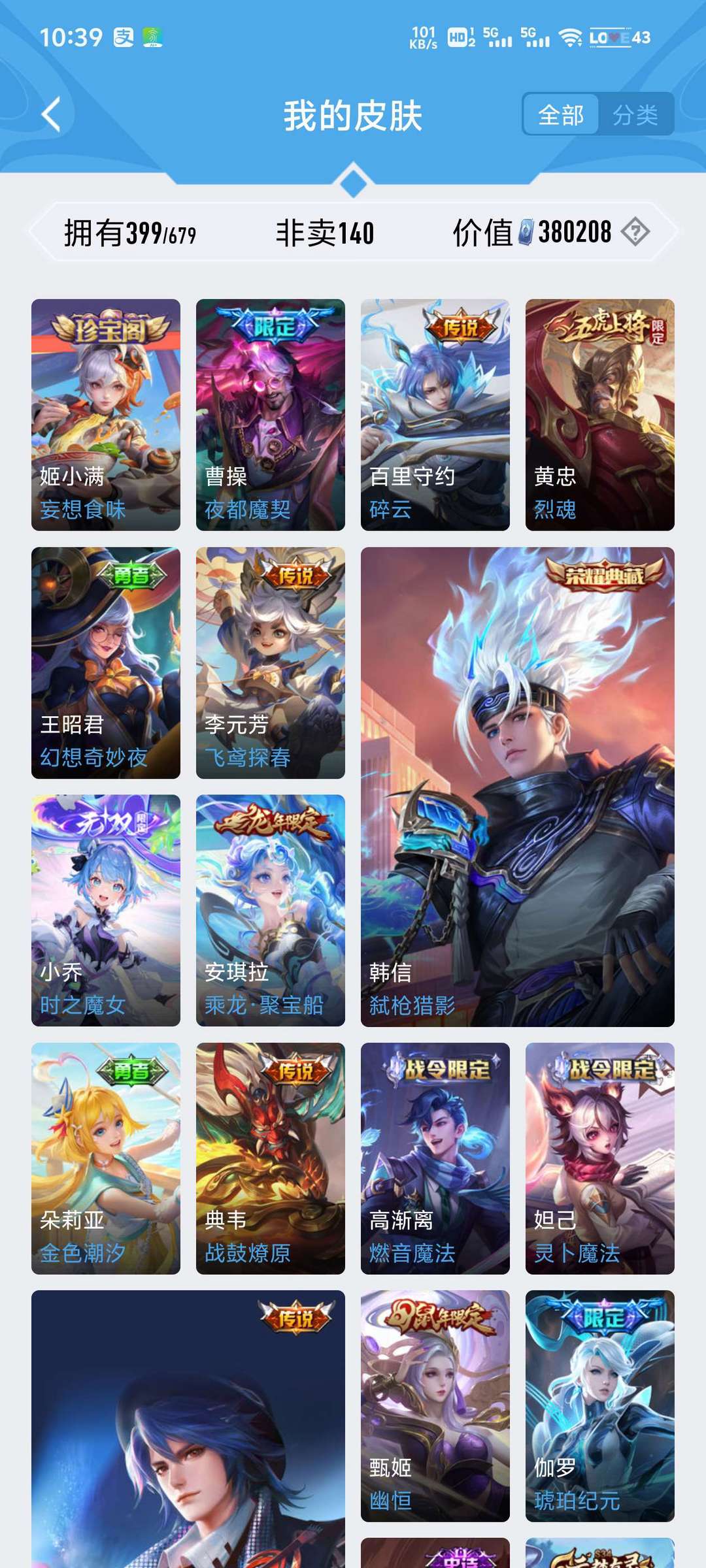 装备描述:无限倾心貂蝉 黄金白羊 四无双/四典藏