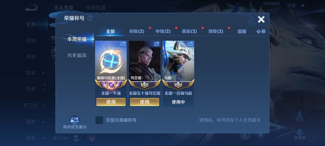 正式服四月在榜双小国司空震马超/巅峰万强1334名/团队之光/历史1.2万小国马超司空震/禁巅峰