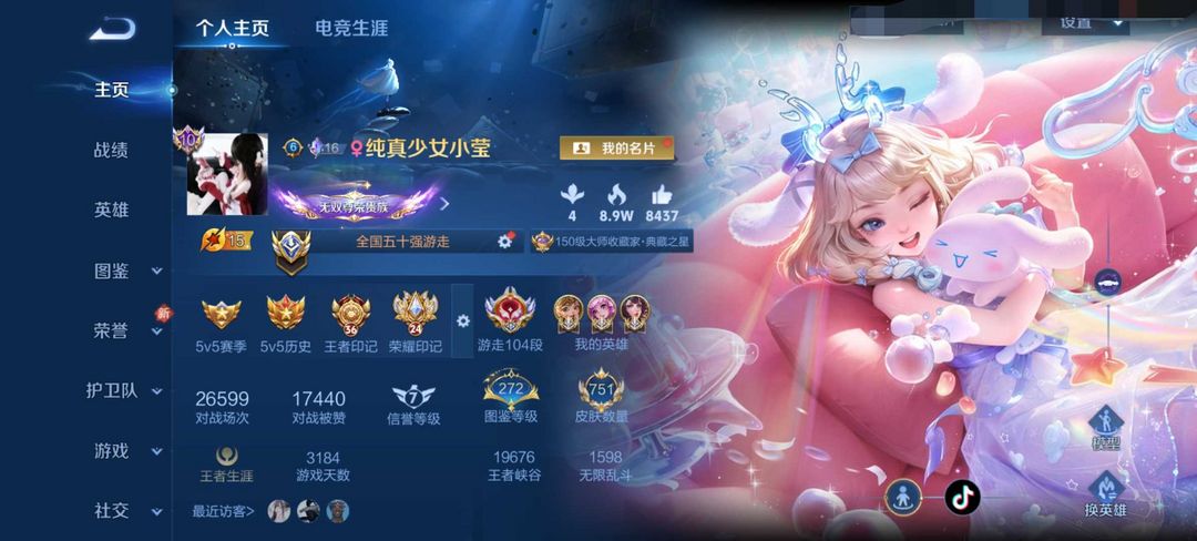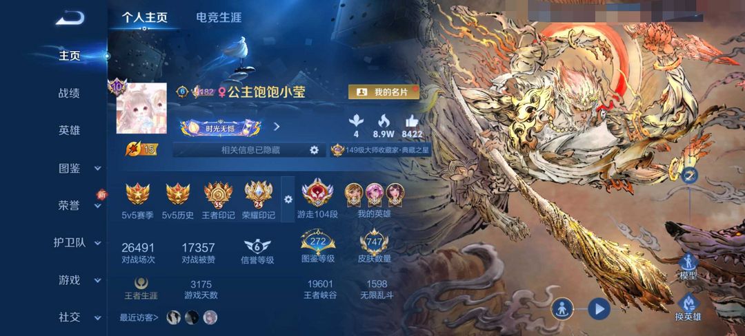 禁言⚡️在榜50强女号小国标104段游走✨猴子无相新皮✨10大国服瑶大乔孙膑✨满水晶满无双满珍品