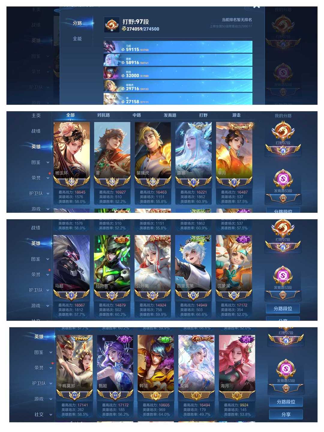 1月份正式服 历史50强打野 97段百段打野 大国服裴擒虎 杨玉环霏 小国标马超