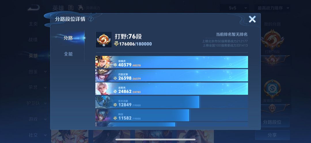 国服野王带妹号,小国诸葛,小国玄策,新上76段打野,八万战,无双V10传承