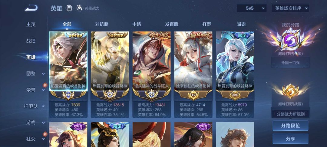 《巅峰打野万强》3月在榜小国标镜虎⭐历史打野分路前百⭐历史大国镜虎⭐极品男神号 可排位禁巅峰