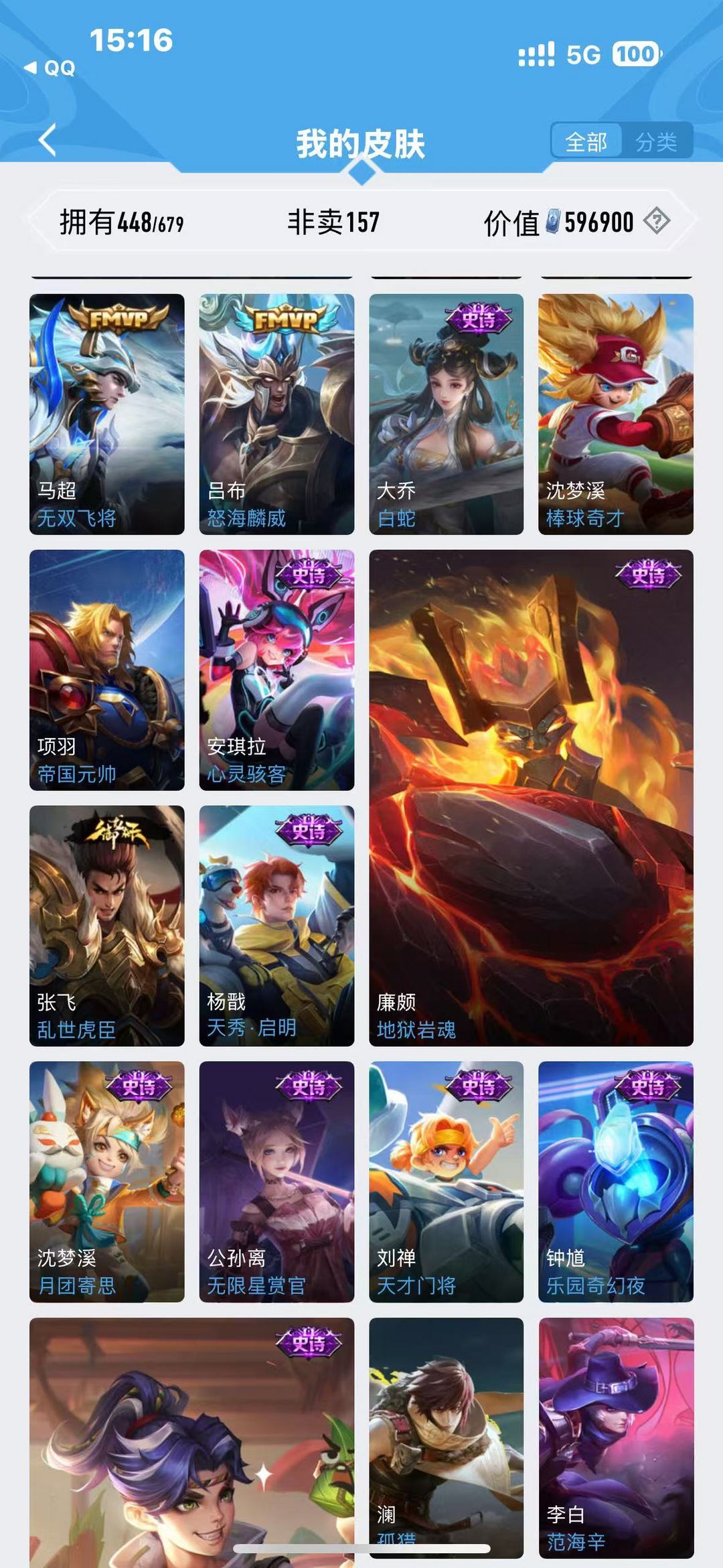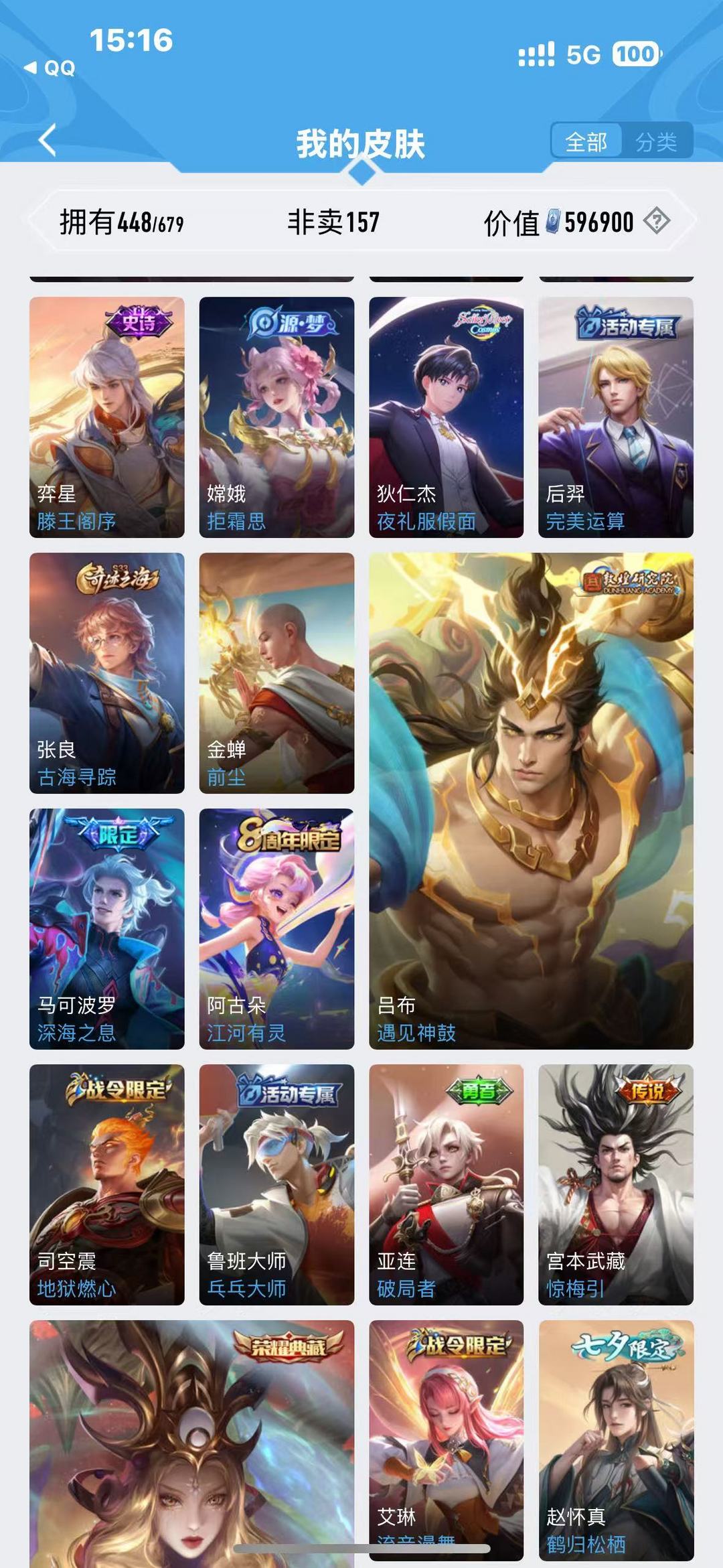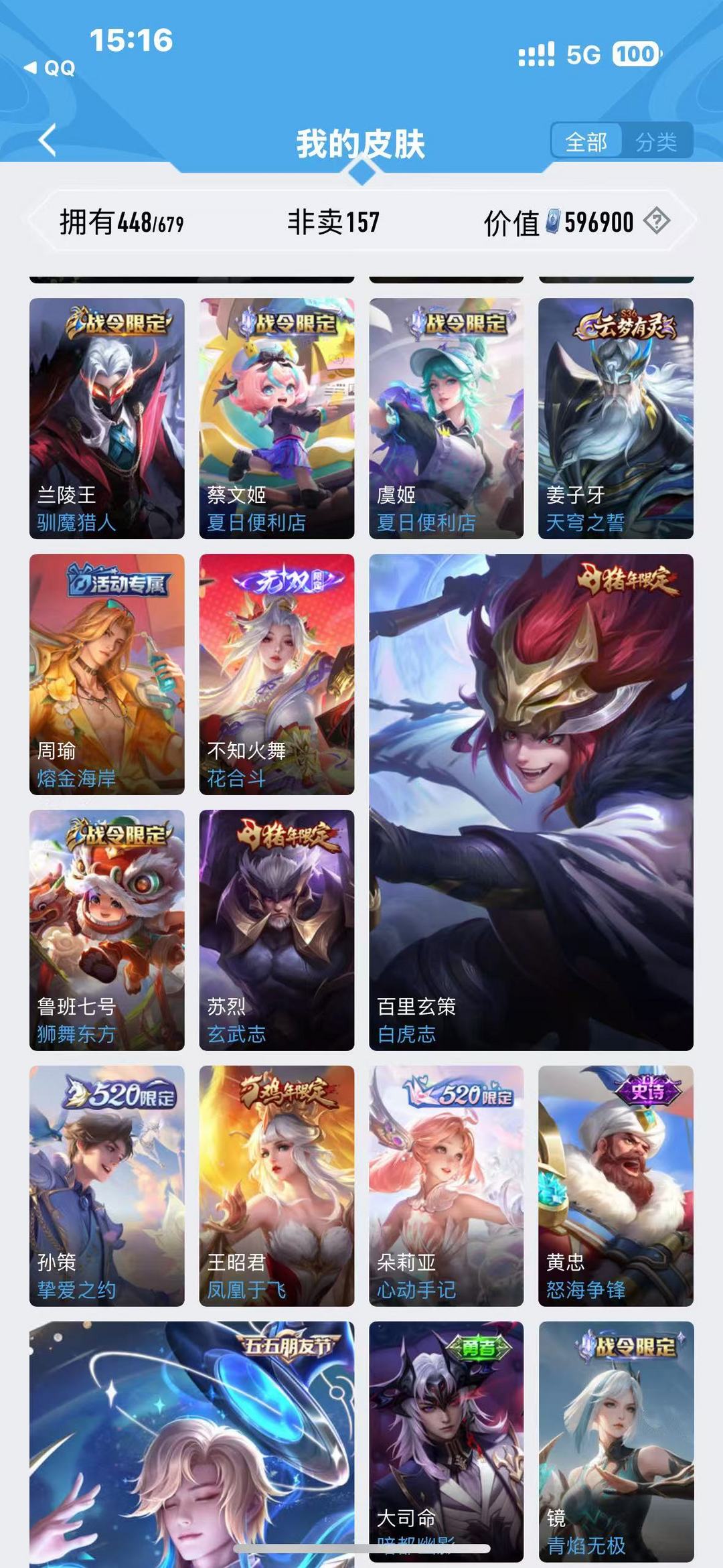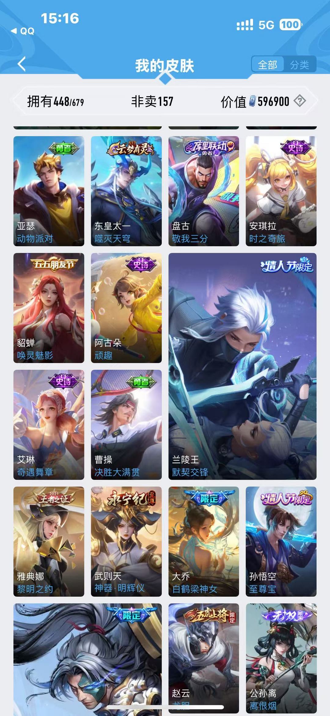 无双V10,448皮肤,全无双皮肤,荣耀典藏,蛇年限定,龙年限定,各种稀有皮肤