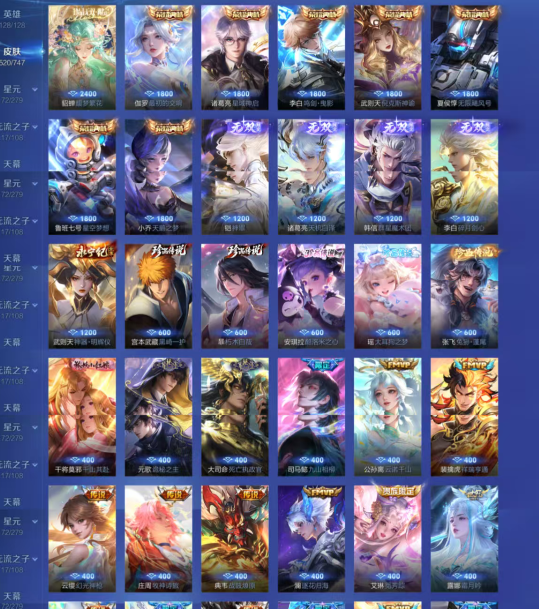 建议包天 无双v10 525皮 新皮貂蝉❤鸣剑·曳影❤星域神启❤倪克斯神谕❤无限飓风号❤祈雪❤凤求凰
