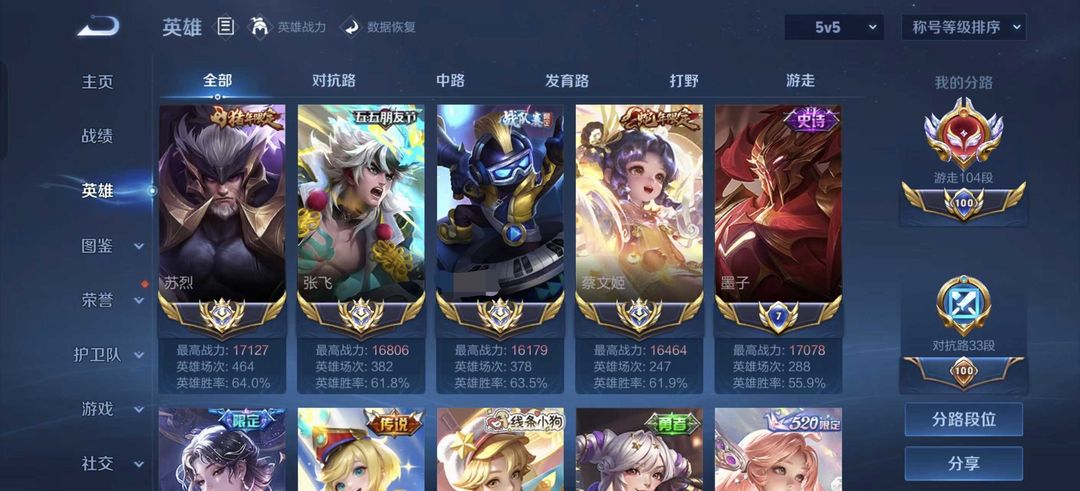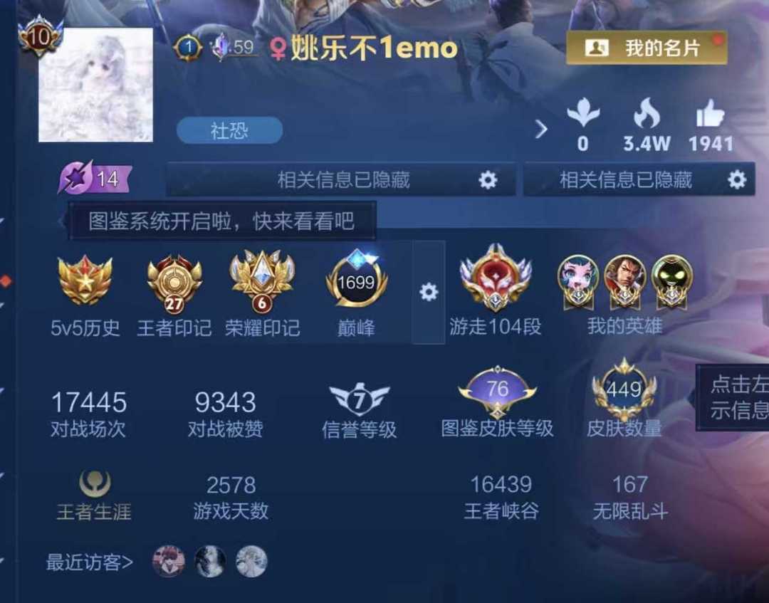 禁言禁加好友⭐现巅峰1600⭐104段小国标游走⭐449皮V10可共享⭐1.7w战力国服苏烈