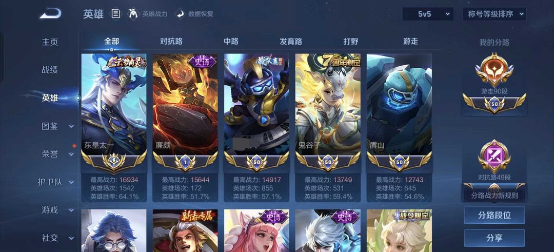 巅峰开⭐90段小国标游走⭐历史国服东皇太一⭐历史小国标廉颇太乙鬼谷子盾山⭐带妹必备