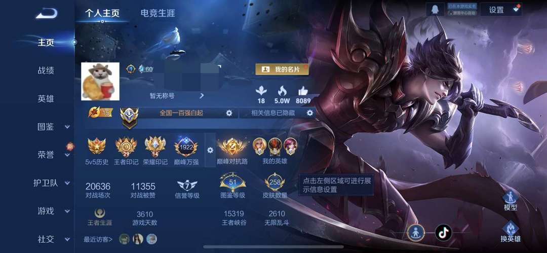 主页大国服现国百白起,巅峰万强3312名对抗64段发育路73段王者13星禁止巅峰