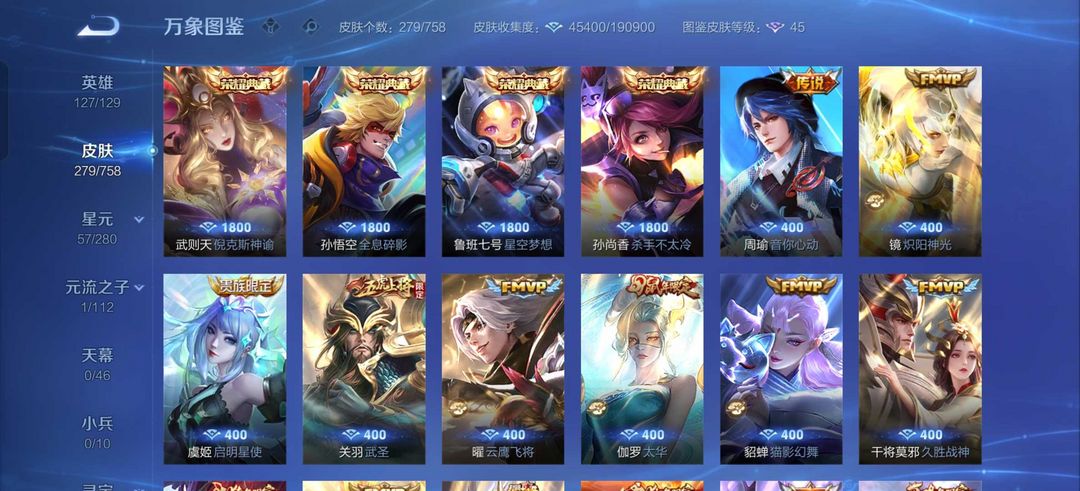 最强王者 V9 4典藏 278皮 纯白花嫁/天魔缭乱/至尊宝/热情桑巴/青龙志/白虎志/久胜战神