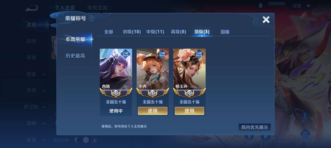 本周在榜国服小乔 西施 杨玉环,【巅峰2100头像框】【可排位禁巅峰】【抢先】