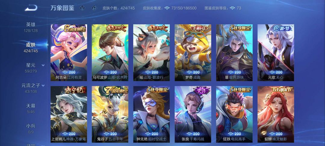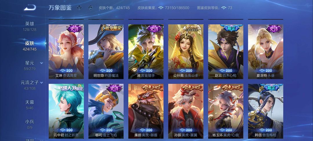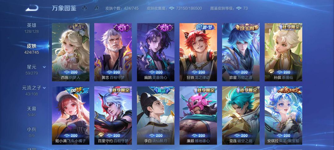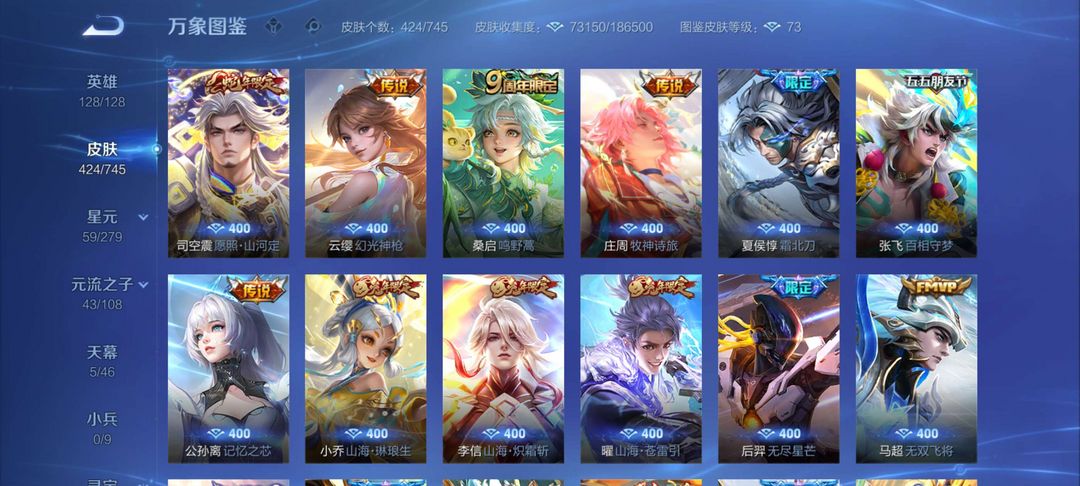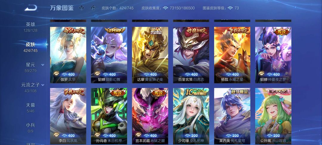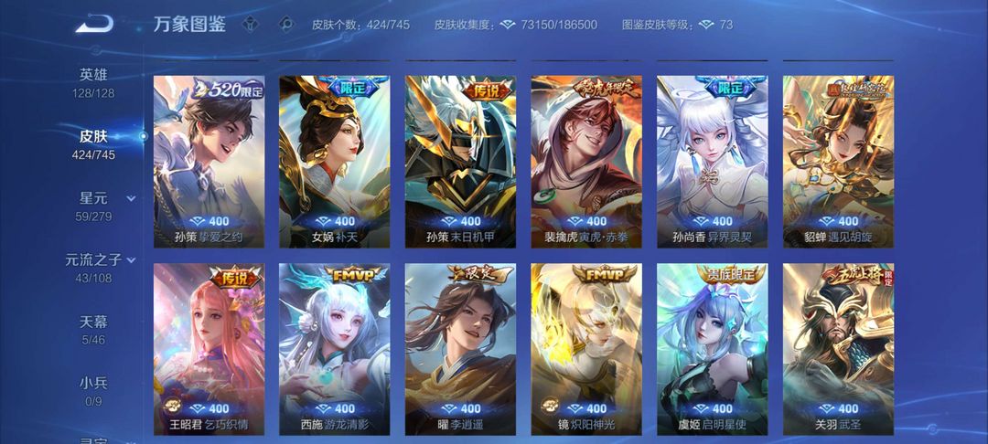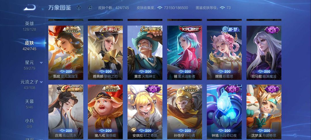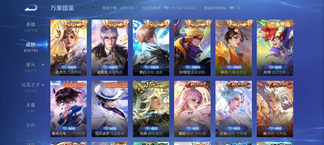 【v9424皮肤】☆5典藏☆3珍品怪盗基德☆37传说皮肤☆138史诗皮肤☆4fmvp☆6KPL限定