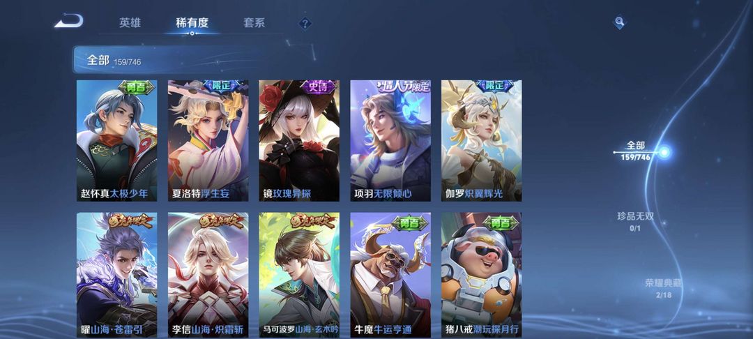 韩信李白两典藏,老虎传说皮肤,司空震传说皮肤,大量打野传说限定皮肤,大量传说皮肤,请善待账号