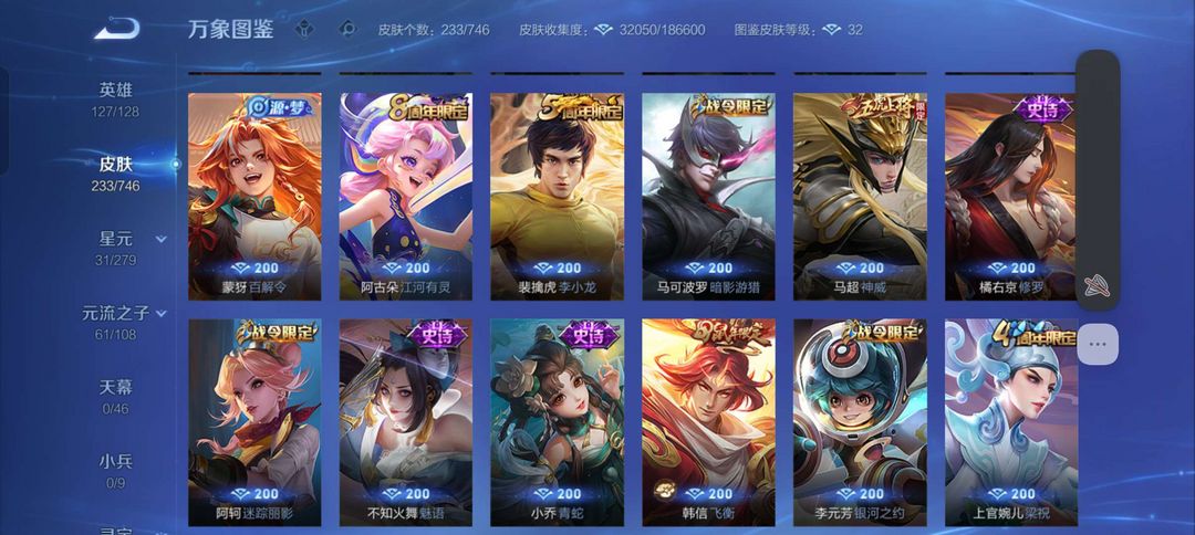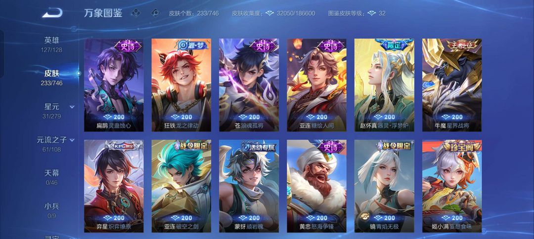 铠典藏皮肤,武陵仙君,镜,公孙离FMVP皮肤,澜蛇限,韩信鼠限(不禁言)