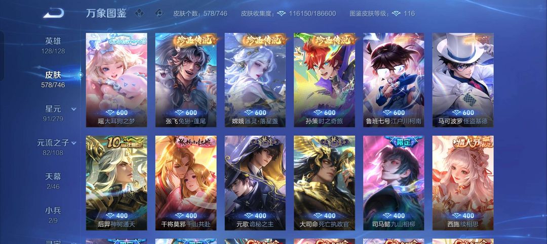 传说80,全英雄全铭文,女生皮肤多,可分享皮肤