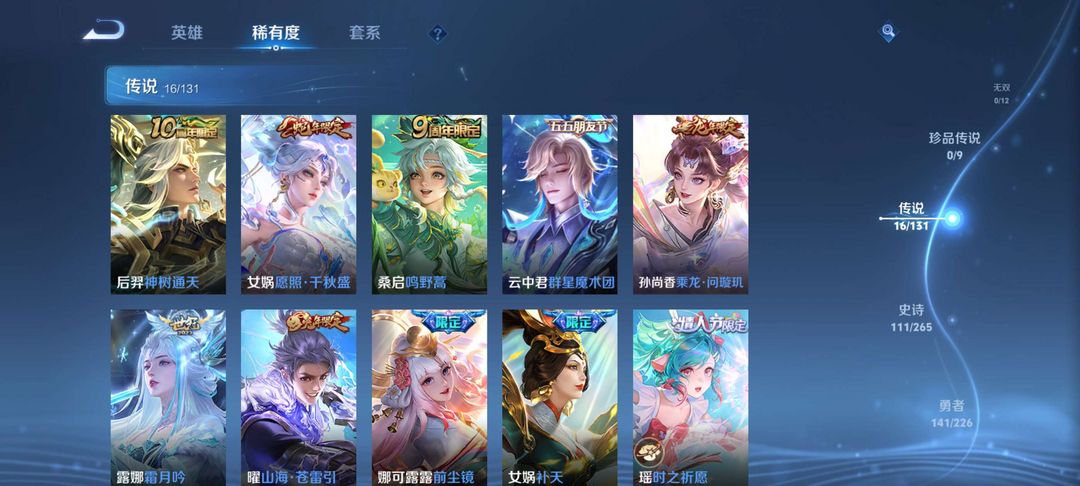 女娲双传说,虞姬典藏,前尘镜,炽阳神光,等限定,传说皮肤
