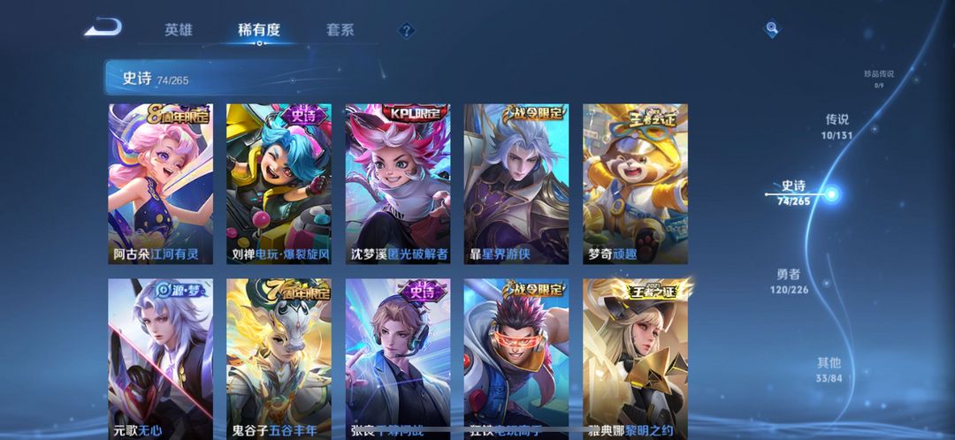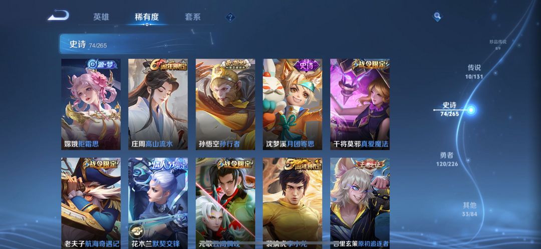 【V7 238皮】【V7】238皮1花木兰荣耀典藏-至尊宝-落雪白狼-深海之喜-澜女娲蛇年限定