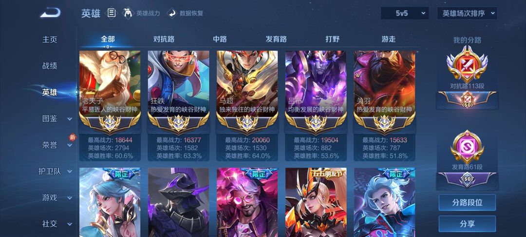 前KPL职业标!在榜114段☜历史13大国6小国马超吕布两万分热门大国吕布马超亚连小瞒达摩关羽蒙恬等