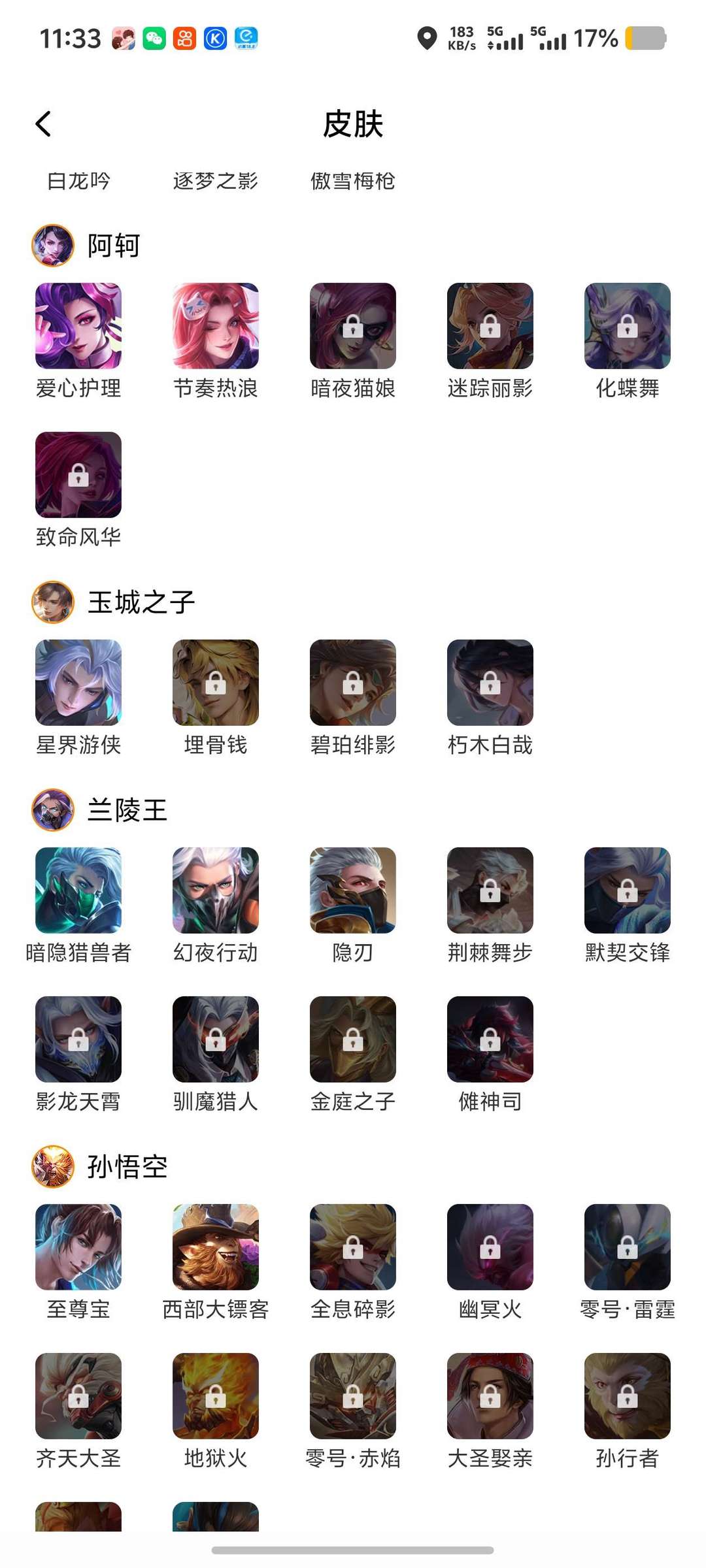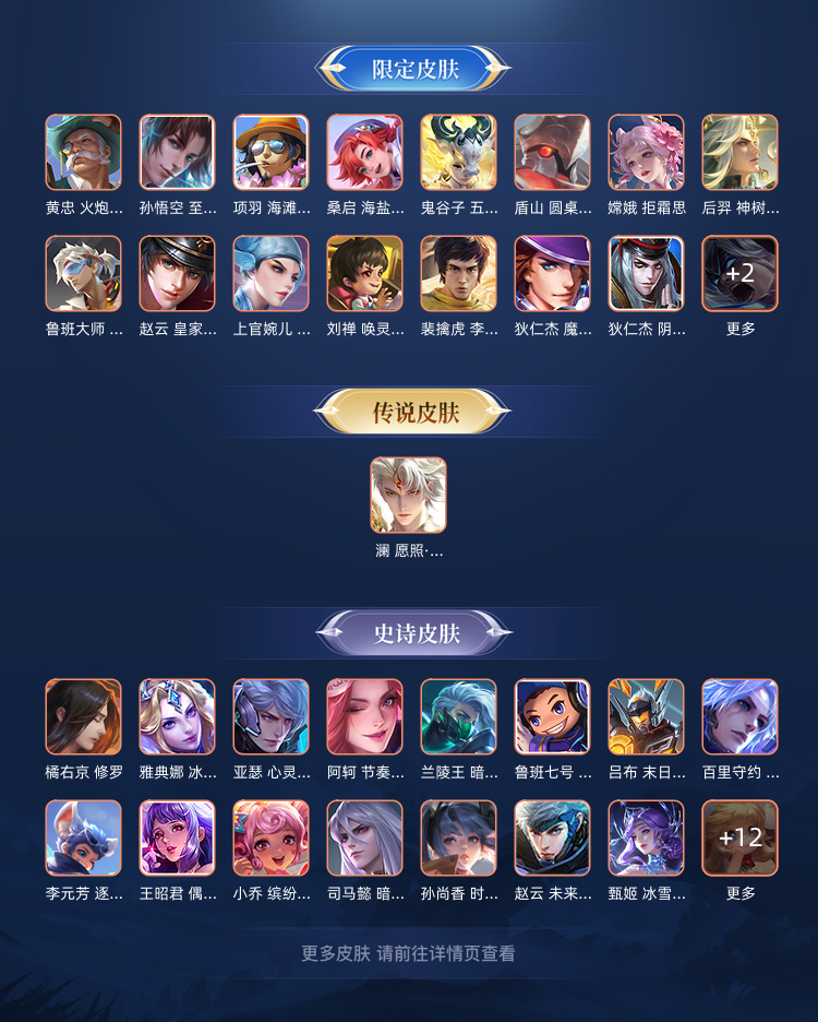 平价号~带妹号~至尊宝~4传说~司马懿全皮肤~澜年限+花海皮肤~很多热门皮肤