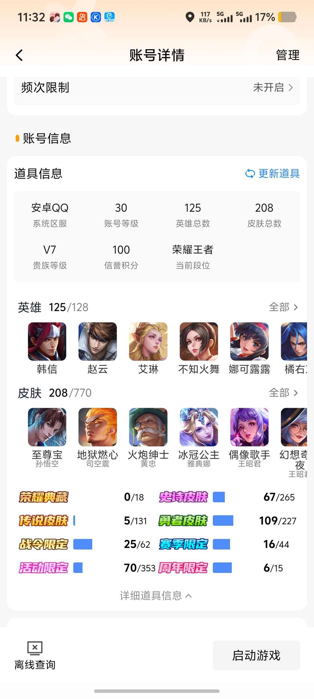游戏区服:王者荣耀-QQ安卓-QQ账号