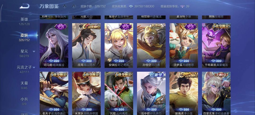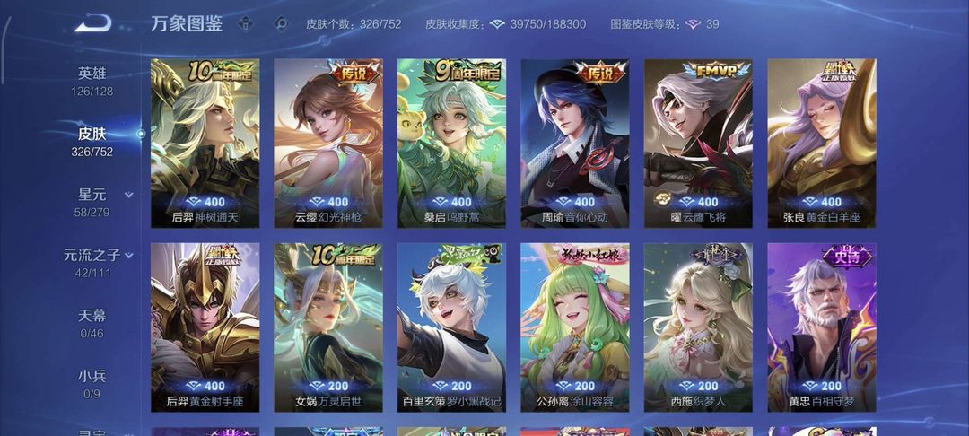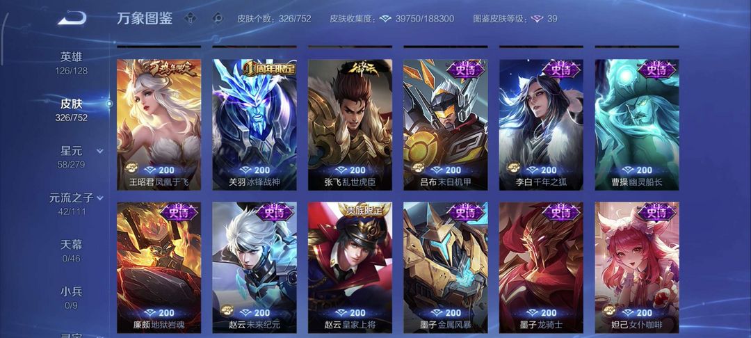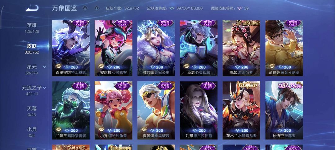 300多个皮肤。非常好。冰封战神至尊宝。