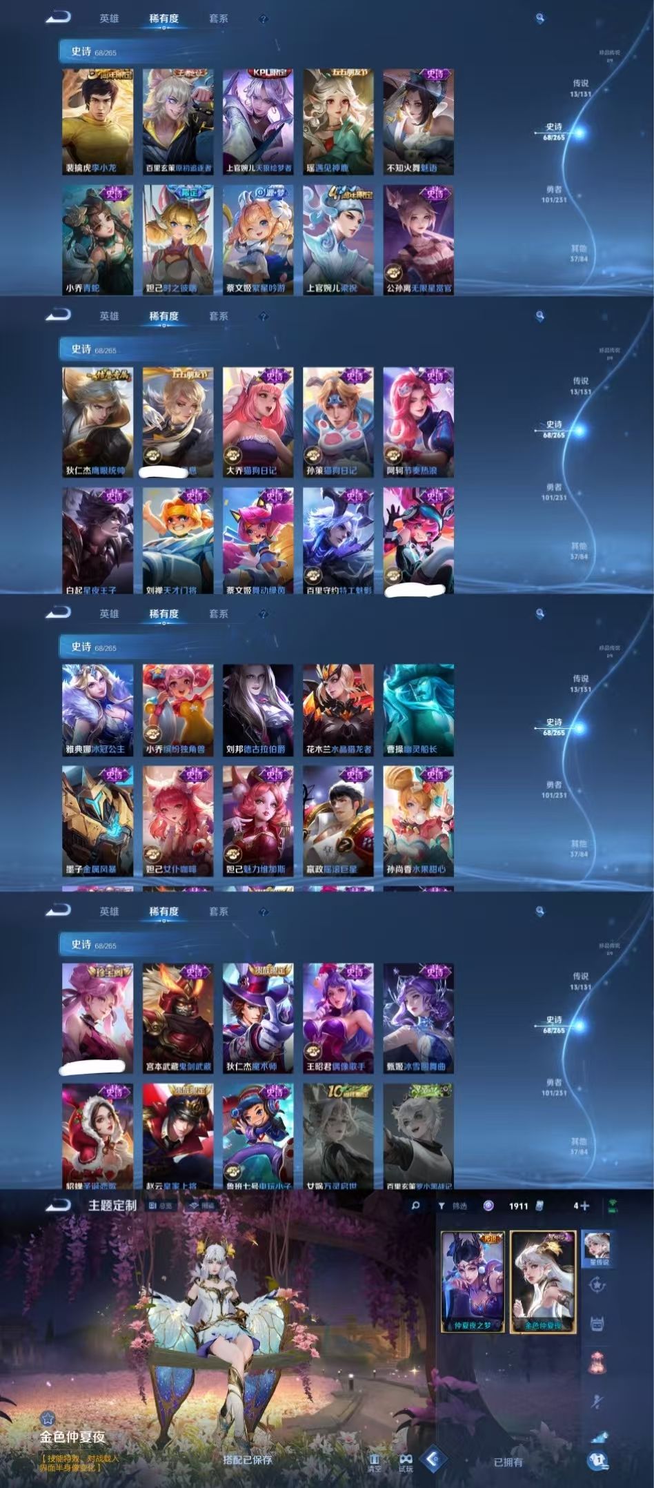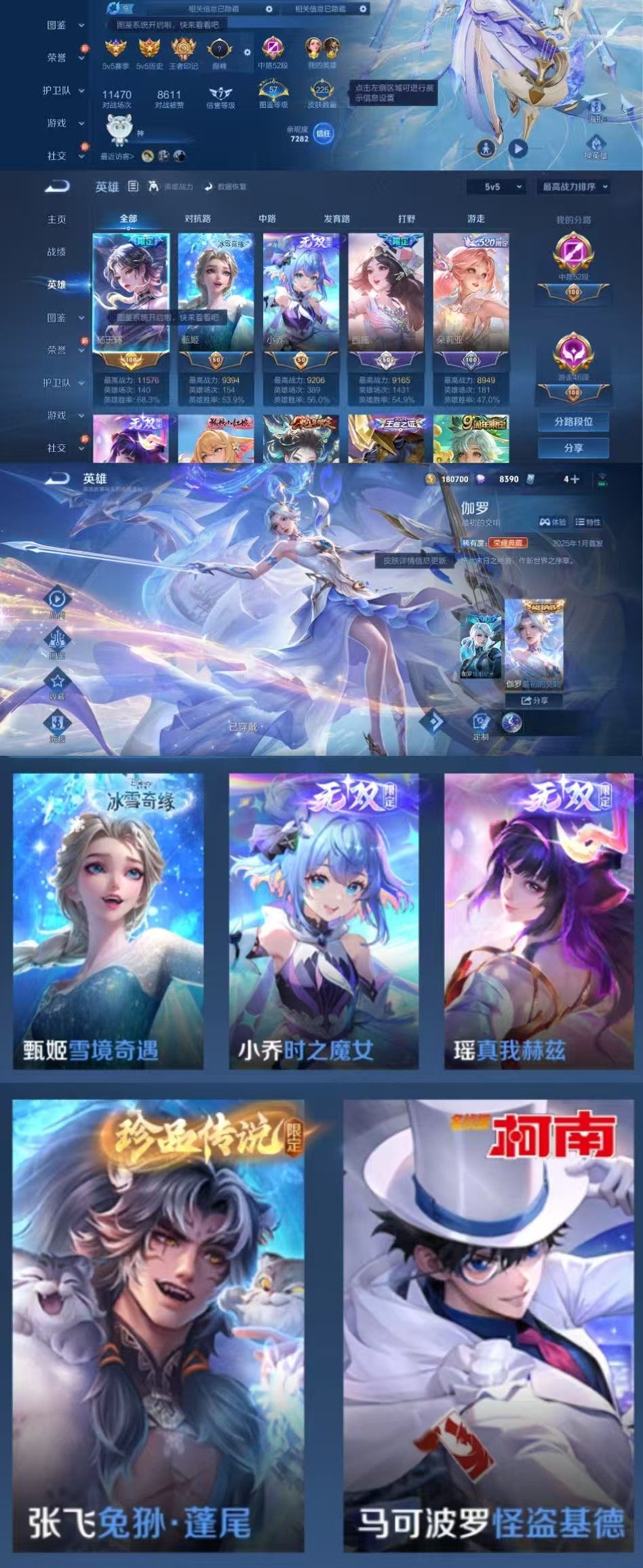 限制: 撤单率<49%才可租用此帐号装备描述:时间到了还登录白玩或者顶号全部改密拉黑处理永不解除,顶号机器会秒禁玩改密,顶号不仅拉黑还没得玩,赚三两块不容易,请理解谢谢。 ❤❤❤❤❤❤❤❤❤❤❤❤❤❤❤❤❤❤❤ 请勿开挂,挂机,送头,骂人,撤单后游戏等如有违规永久拉黑永不解除。 重置二级密码不要费劲了,号主每天都会上号查看,多行不义必自毙,人在做天在看,多做好事多自律,少做缺德事。 该号英雄126个皮肤225个,典藏1个,无双3个,珍品传说2个,星传说2个,传说13个,史诗68个,祝您游戏愉快~