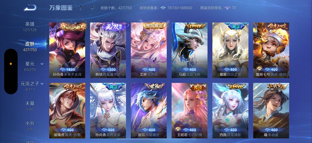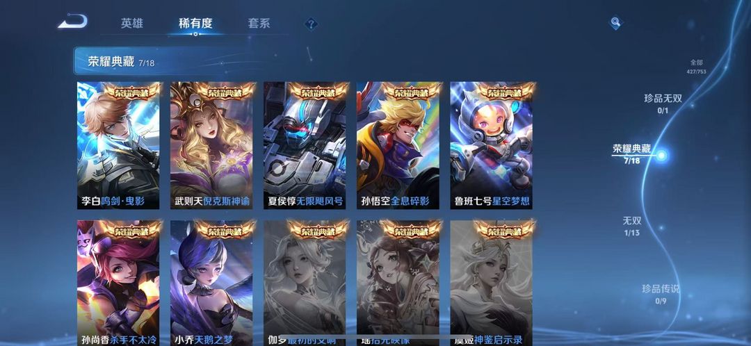 v10❤️426皮肤❤️7个荣耀典藏❤️全息碎影❤️星空梦想❤️天鹅之梦❤️一念神魔❤️群星魔术团