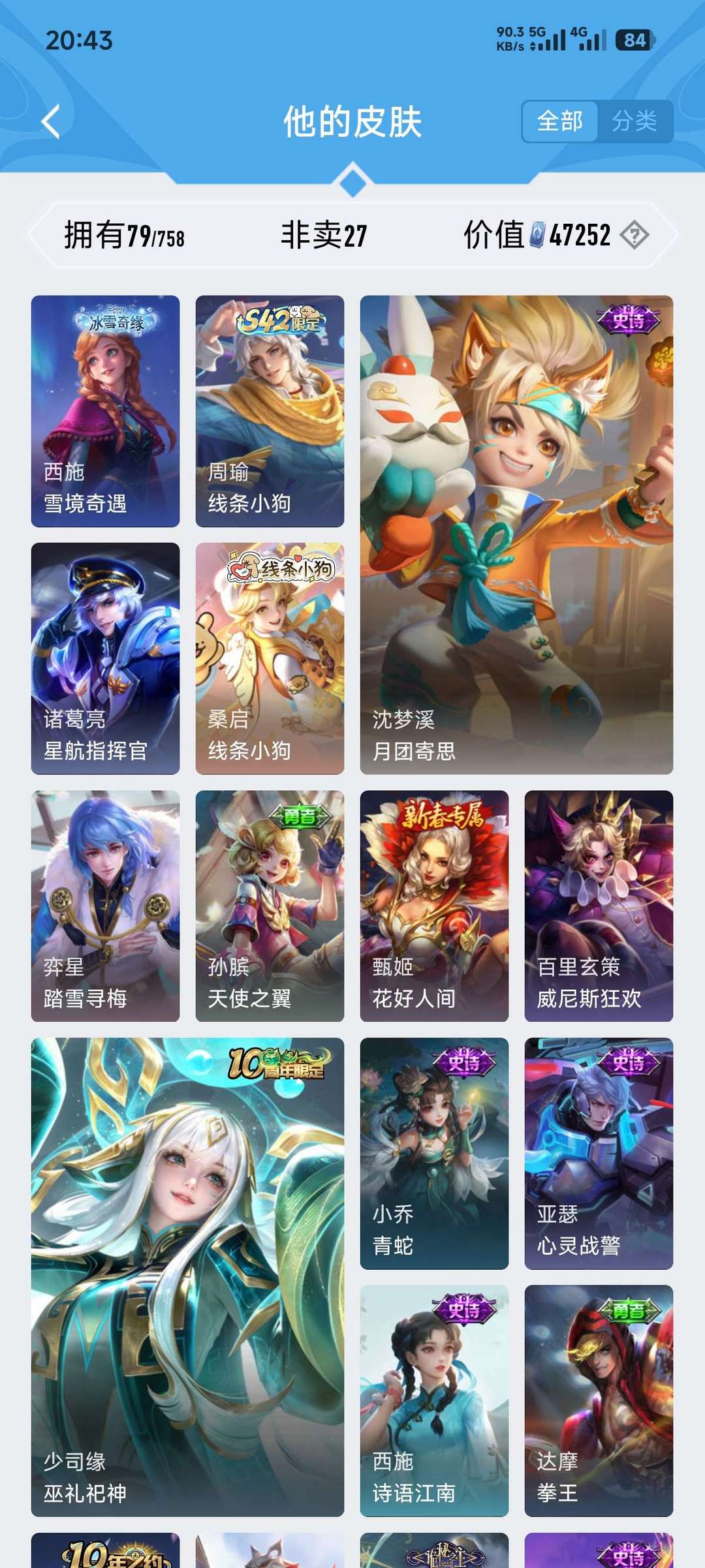 装备描述:西施-诗语江南 小乔-青蛇 西施-织梦人 阿轲-化蝶舞 黄忠-百相守梦 露娜-紫霞仙子 百里守约-特工魅影 桑启-鸣野蒿 大乔-猫狗日记 妲己-女仆咖啡 小乔-缤纷独角兽 诸葛亮-黄金分割率白色礼服星元 雅典娜-冰冠公主 米莱狄-契约魔法