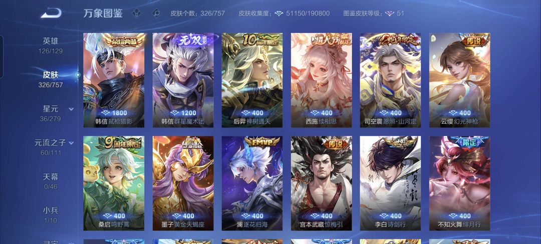满铭文,326皮肤,30传说,韩信全皮,典藏韩信,典藏小兵,钻石2