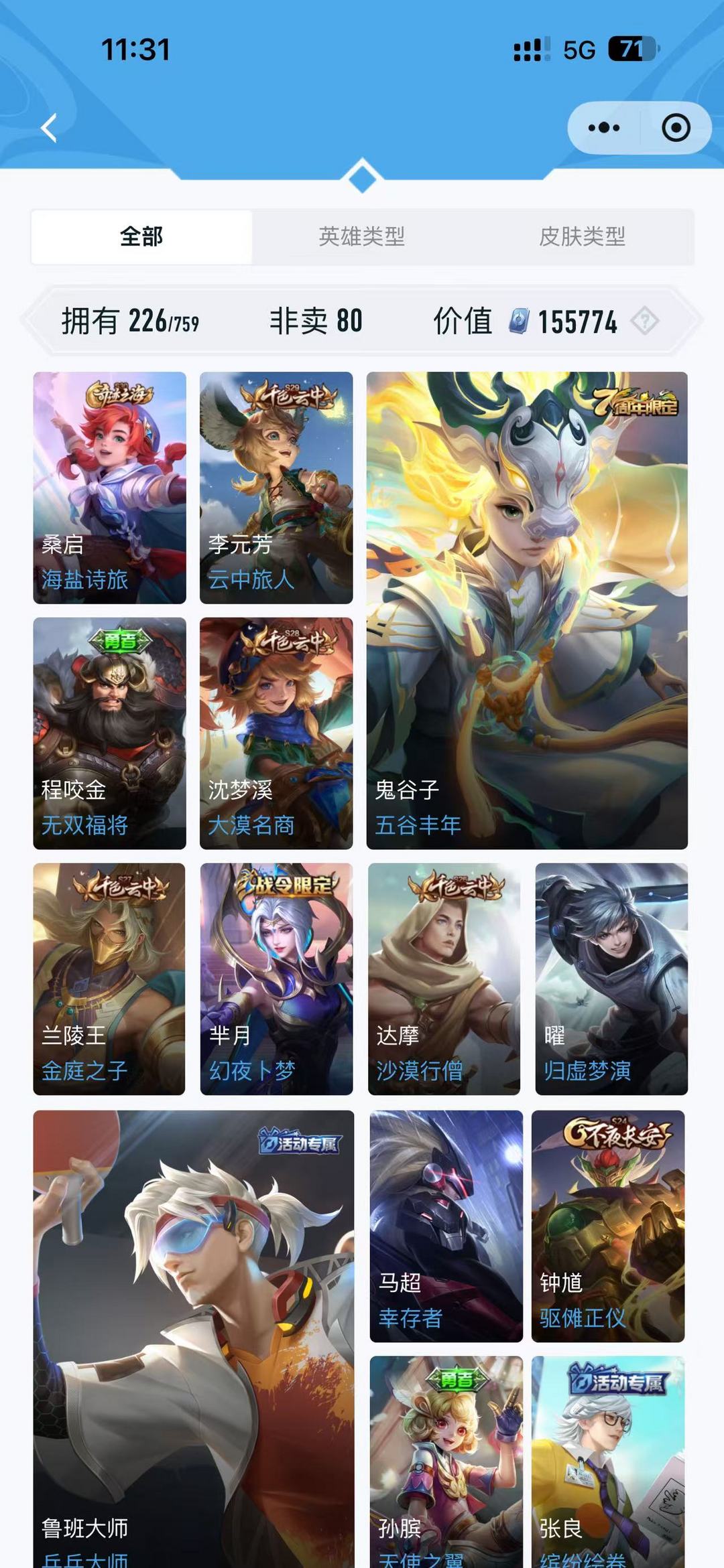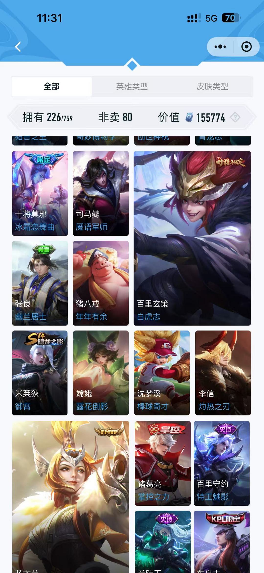 皮肤225精品皮肤低段位炸鱼号