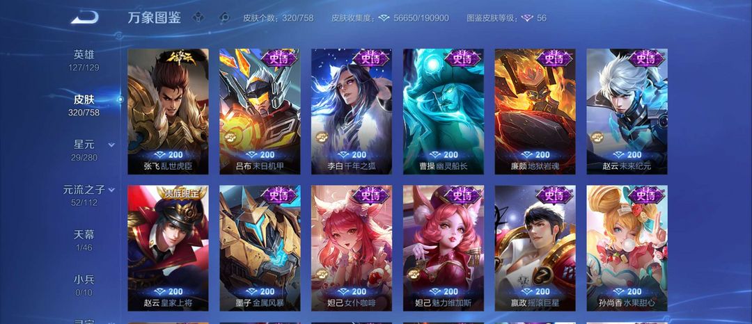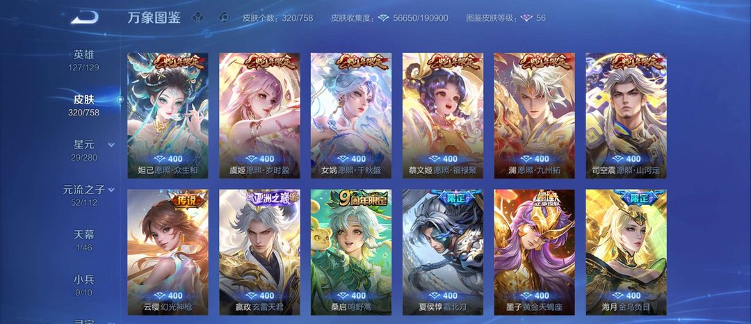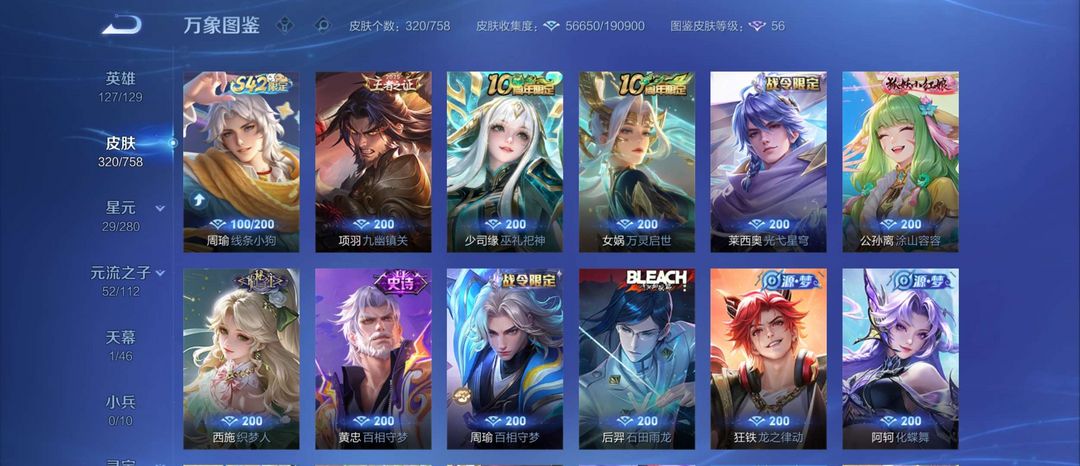 6无双*无相,天机白泽,碎月剑心,璃龙剑,神罪,群星魔术团,虞姬,伽罗典藏,2珍品,怪盗基德