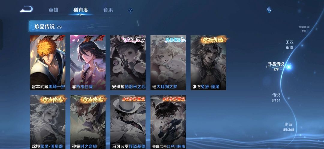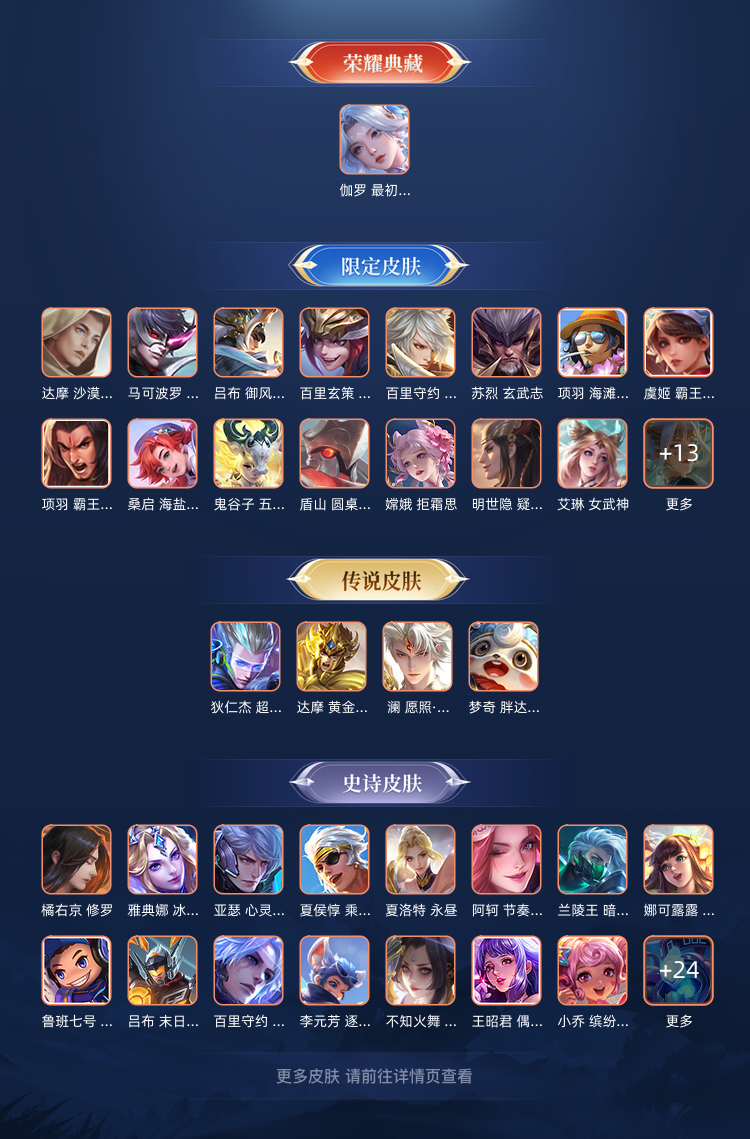 伽罗荣耀典藏,朱雀志,白虎志,死神全套,皮肤够玩可以看图,可以排位