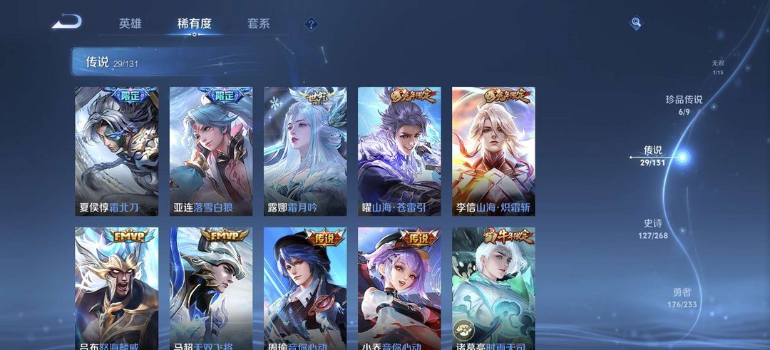 李白花木兰典藏,东方曜的五双限定,宫本武藏暃安琪拉嫦娥鲁班七号马可波罗珍品传说,38个传说以上