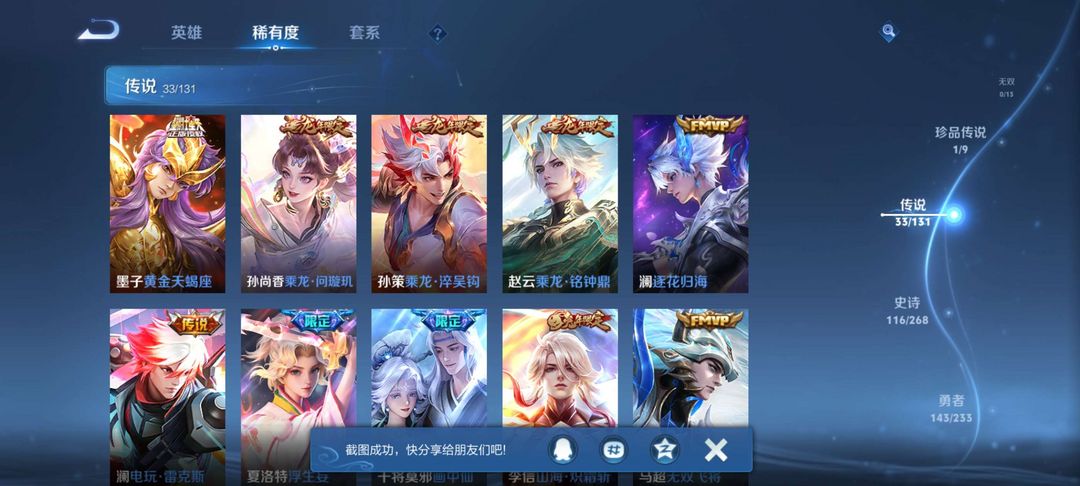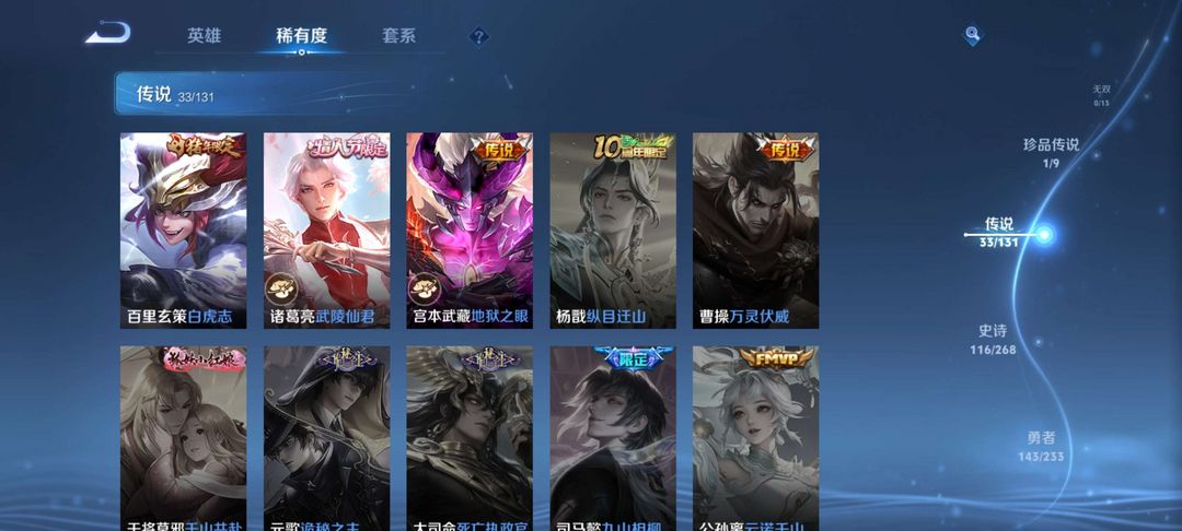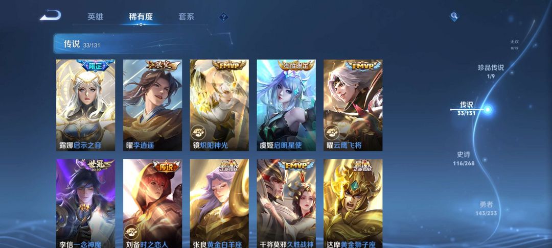 澜全皮肤,李信全皮肤,鸣剑曳影,至尊宝,马可波罗怪盗基德,超多传说限定。