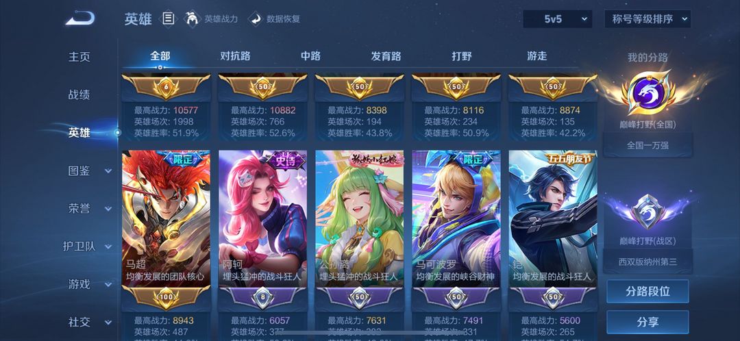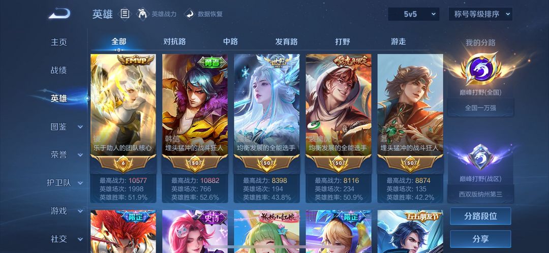 装备描述:在榜省标镜、韩信、罪【英雄全有,皮肤有弑枪猎影-琥珀纪元-炽阳神光-寅虎·赤拳-无双飞将-妄想实况-逐花归海】-禁止巅峰赛! 禁止利用账号进行开挂、使用辅助违规软件诈骗等违规操作。
